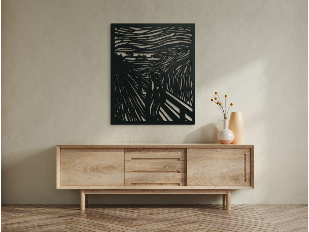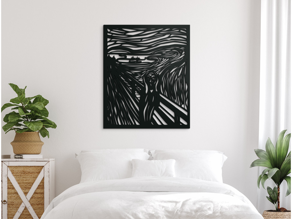 Obraz Výkrik od populáírneho umelca Edvarda Muncha je stvárnený tak, aby zachytil tajomný rozmer diaľok a hĺbky, no zároveň priniesol pocit pohody. Jeho abstraktné línie dodávajú celkovému dizajnu originálny ráz, vďaka ktorému sa obraz hodí do moderného i klasického interiéru. Táto dekorácia je skvelou voľbou pre každého, kto túži vniesť do svojho domova pokojné vibrácie a estetickú eleganciu.