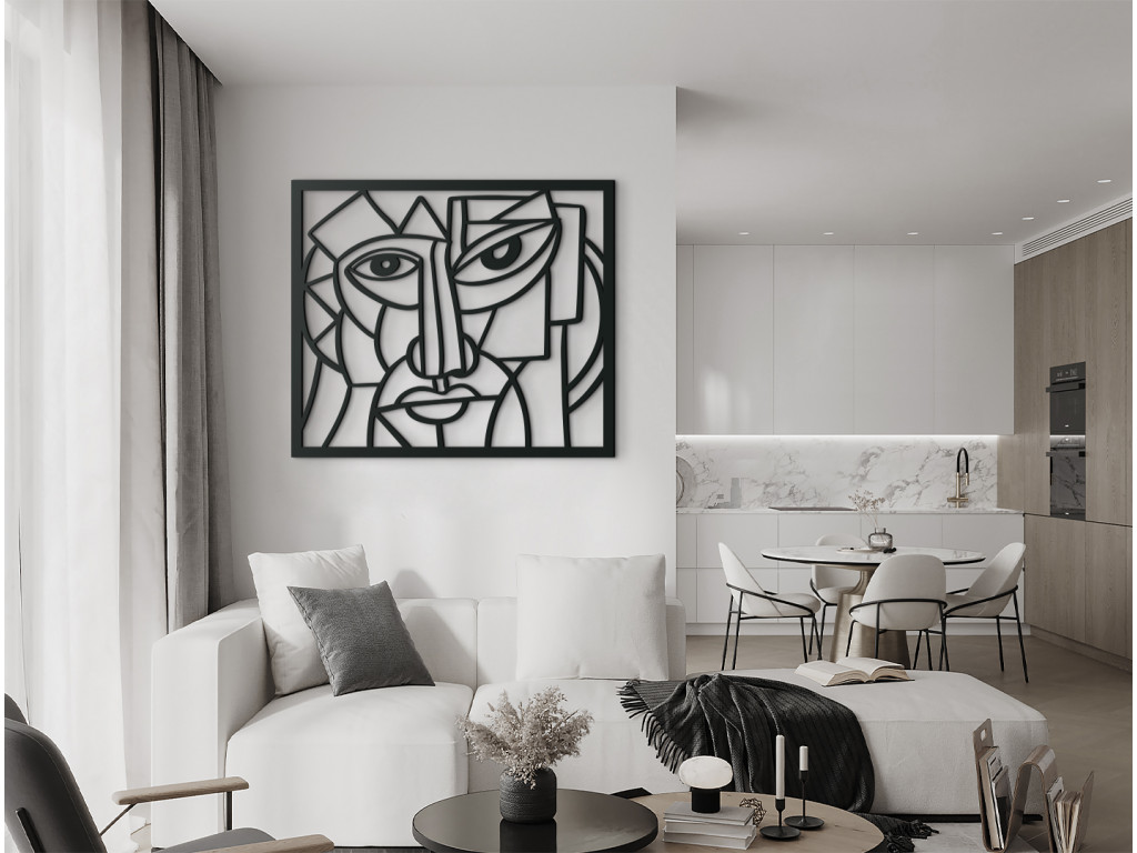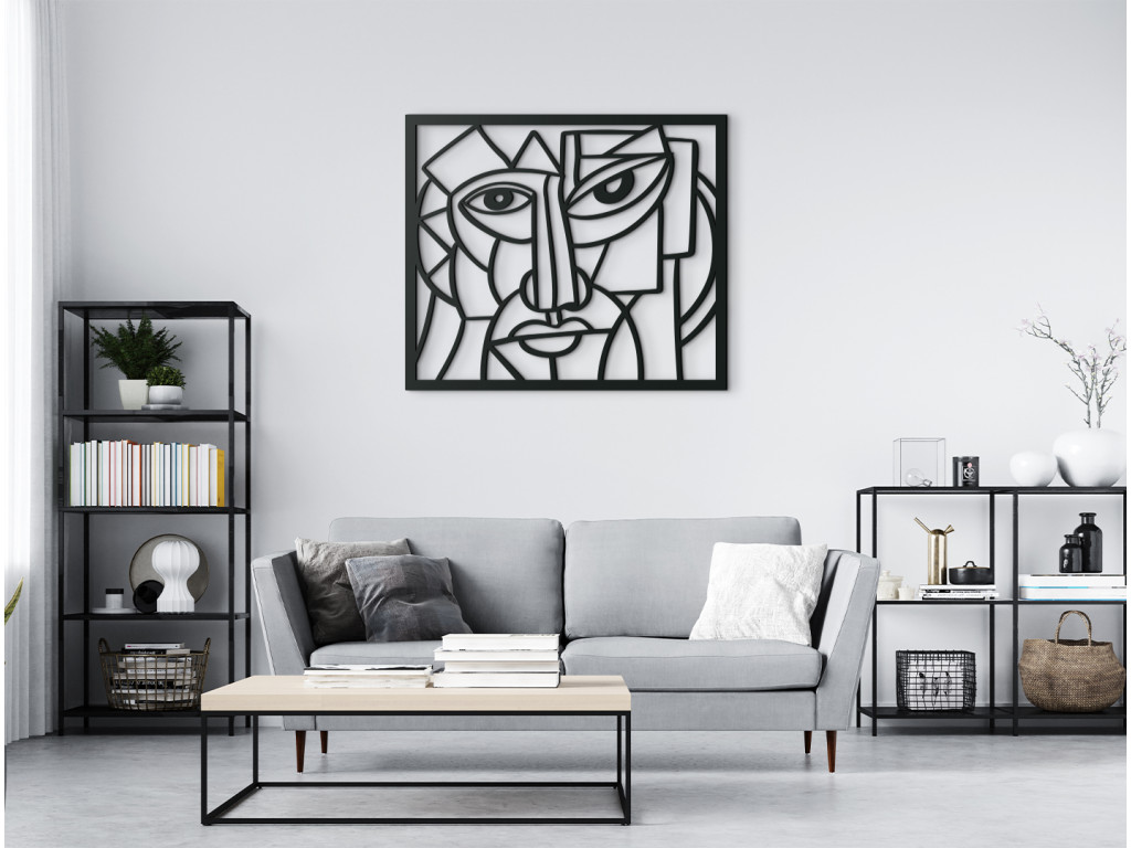 Kubistický obraz ako od majstra kubizmu - Pabla Picassa v netradičnom drevenom vyhotovení je ideálnym doplnkom do moderného interiéru. V obraze môžete vidieť staršieho pána či inú tvár. Je vhodný do moderných priestorov a tiež skvelým darčekom pre milovníkov kubistického štýlu.