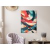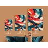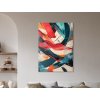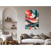 Abstraktná maľba plná energie a života využíva odvážne ťahy štetcom a kontrastné farby – červenú, tyrkysovú, oranžovú a bielu. Kompozícia pôsobí spontánne a expresívne, čím vyvoláva pocit pohybu a emócie v divákovi.