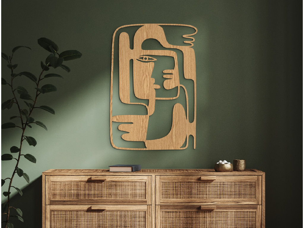 Drevený obraz v avantgardnom štýle vyobrazuje ľudskú tvár, ktorú si vďaka predstavivosti môžete vykresliť podľa seba. Nálepka v sebe spája moderné prvky s prvkami kubizmu. Bude ideálnym doplnkom do interiéru zariadenom v akomkoľvek štýle.