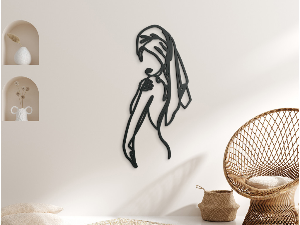 Drevený obraz Kúpeľňová dáma vnesie do vášho interiéru eleganciu a šarm. Tento jemný dizajn, vyrobený z kvalitnej HDF dosky, zachytáva siluetu ženy po dlhom a relaxačnom kúpeli, čím vytvára pokojný a uvoľnený dojem.