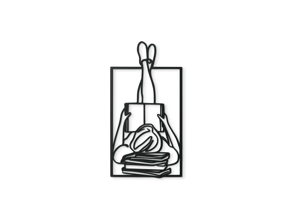 Drevený obraz na stenu s motívom dievčaťa s knihou, ktorá má vyložené nohy prináša pocit uvoľnenej pohody. Jemne zachytené línie zdôrazňujú pokoj a hlboké sústredenie na čítanie. Je to originálna dekorácia, ktorá podnieti príjemnú atmosféru a zaujme na prvý pohľad.