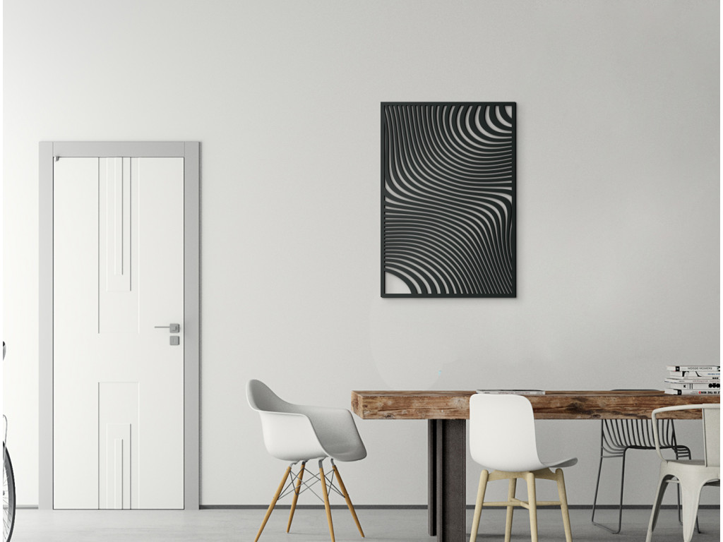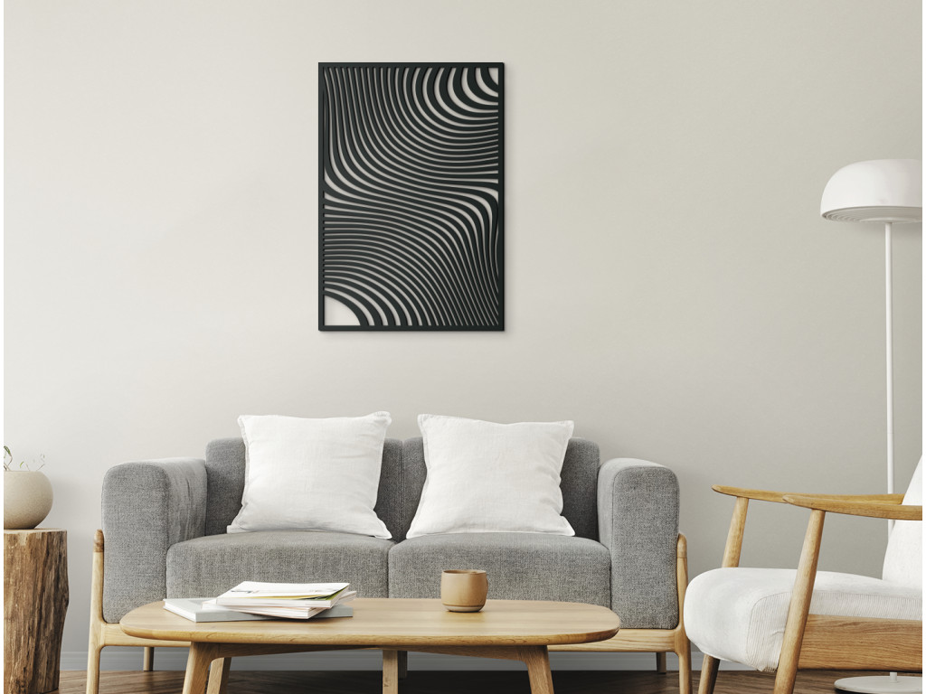 Magicky pôsobiaci drevený obraz na stenu Konvergencie vyvoláva optický klam. Pri dlhšom sledovaní zvlnených čiar sa pozorovateľovi môže zdať, že sa čiary mierne vlnia. Pomenovanie "Konvergencie" si nálepka vyslúžila práve vďaka vzájomnému približovaniu zobrazených čiar. Ak teda chcete dodať svojej obývačke, pracovni alebo spálni originálny vzhľad, dekorácia na stenu Konvergencie vám k tomu určite dopomôže.