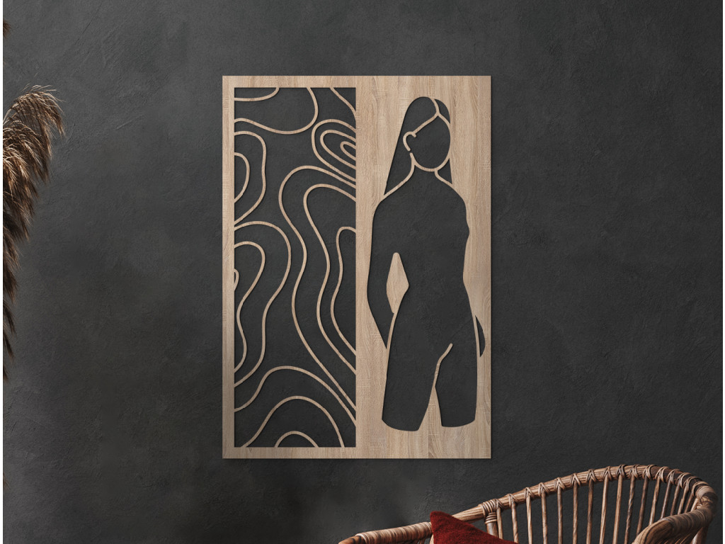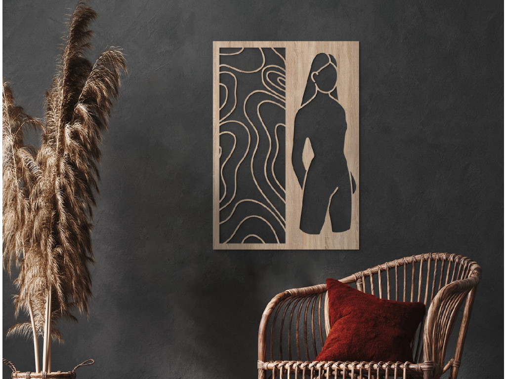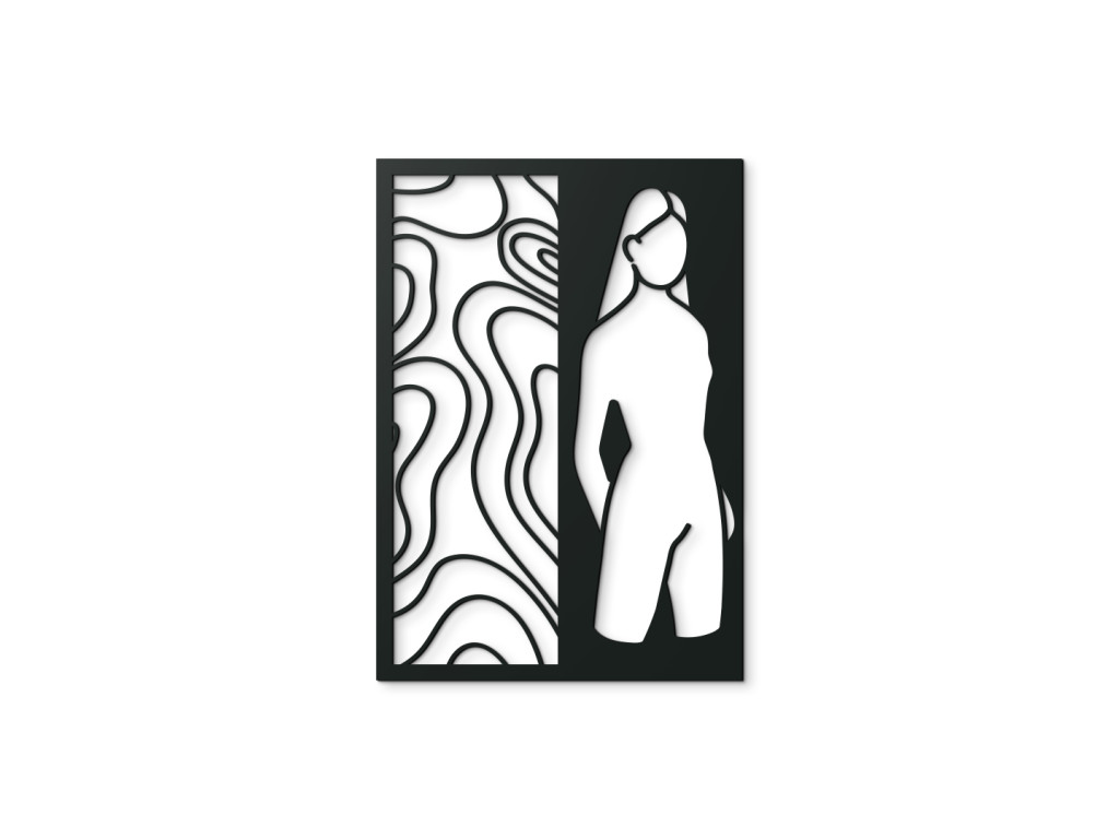 Táto dekorácia znázorňuje siluetu ženy, ktorá v sebe nesie pokoj, pôvab a prirodzenú noblesu. Precízne vypracované línie zvýrazňujú abstraktný charakter diela, čím otvárajú priestor pre interpretáciu a podnecujú predstavivosť. V kombinácii s minimalistickým prostredím vynikne ako umelecký akcent, ktorý podčiarkne osobitý štýl vašej domácnosti. Je to ideálna voľba pre tých, ktorí hľadajú vyvážený súlad medzi moderným dizajnom a nadčasovou estetikou.