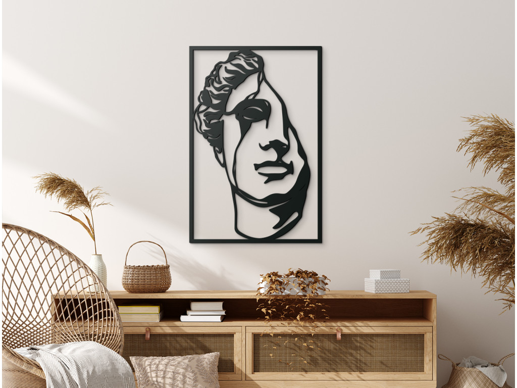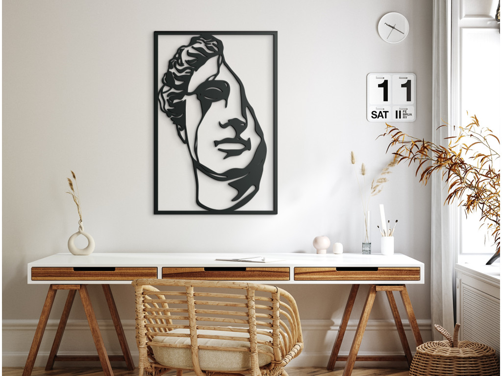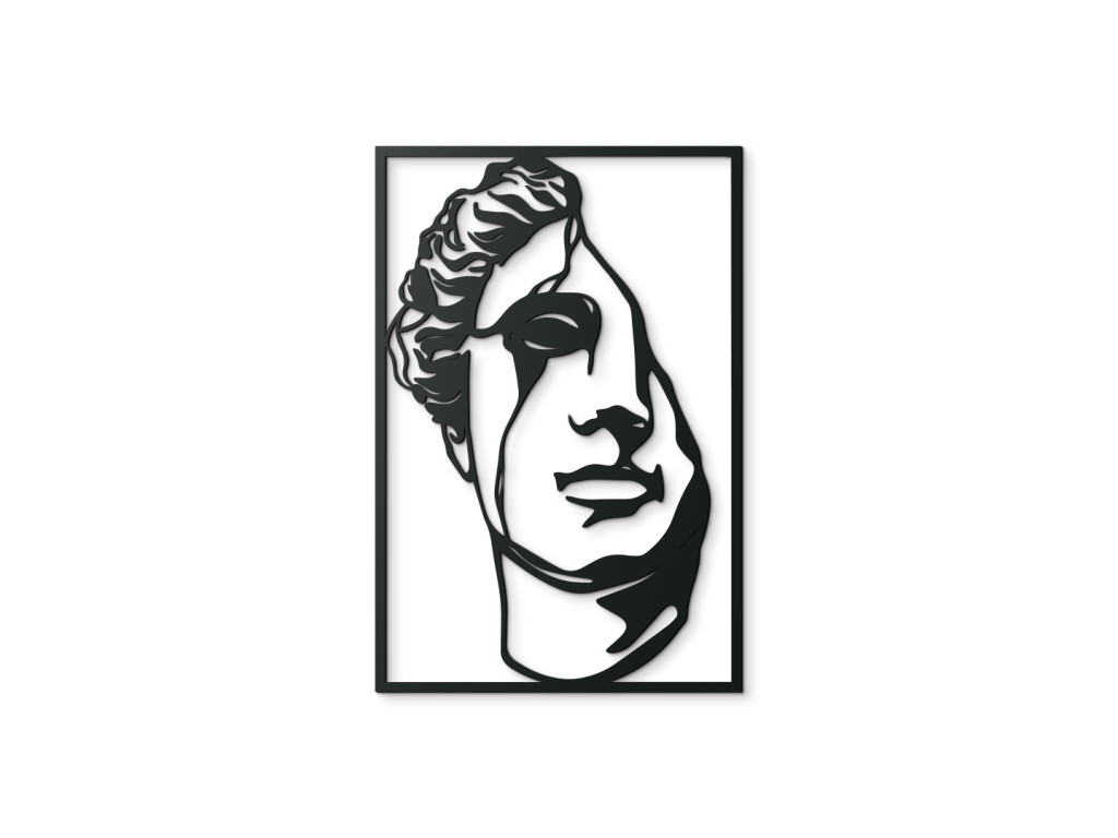 Táto dekorácia zachytáva len polovicu tváre, čím zdôrazňuje pominuteľnosť a záhadu ukrytú v nánosoch dejín. Úmyselne nedokonalé línie a jemné praskliny sprostredkujú dojem, akoby ste na stenu zavesili fragment skutočnej antickej sochy. Precízne prevedenie zaručuje, že drevený materiál verne sprostredkuje hĺbku a dramatickosť motívu. Obraz je tak pripomienkou bohatej histórie a sily estetiky starovekých majstrov.