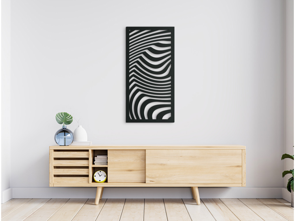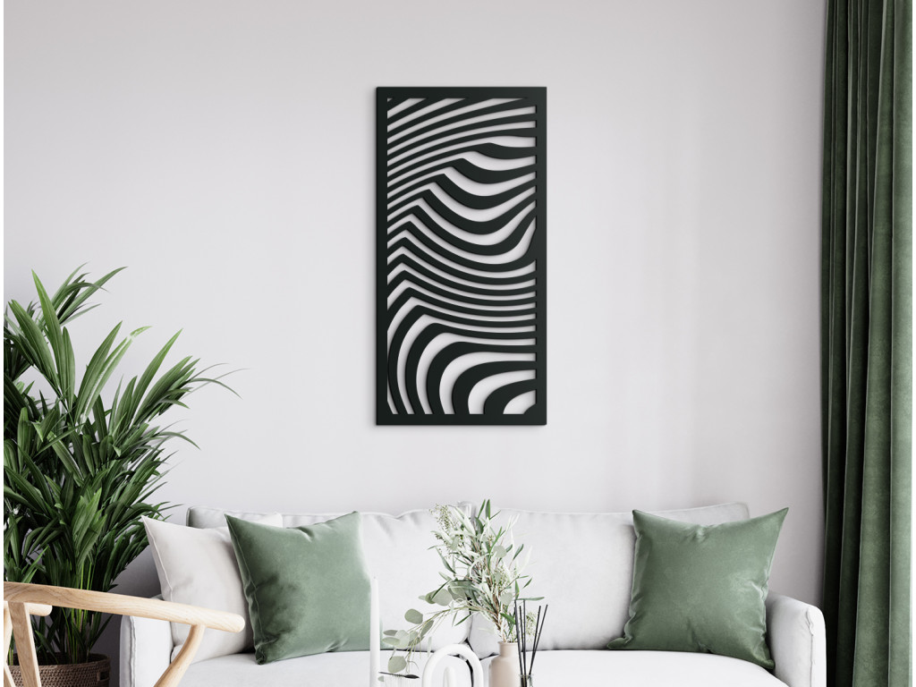 Dodajte vašej obývačke, kancelárií, spálni či predsieni nádych moderného štýlu a elegancie. Drevená nálepka na stenu Pásikavé duny zobrazuje rôzne hrubé a nerovnomerne zvlnené pásy, vytvárajúce ilúziu pieskových dún. Dokonalý efekt vytvára klamlivú predstavu o vyvýšeninách a priehlbinách.