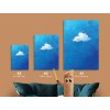 Obraz zobrazuje jediný biely oblak uprostred modrého pozadia. Je spracovaný s dôrazom na objem a jemnú textúru, čo v kontraste s čistou modrou plochou vytvára upokojujúci a minimalistický dojem.