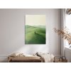 Minimalistická kompozícia zachytáva osamotenú postavu stojacu na zelenom kopci s jemne zvlnenou krajinou v pozadí. Svetlá obloha a prázdny priestor podčiarkujú pokoj, ticho a moment zastavenia.