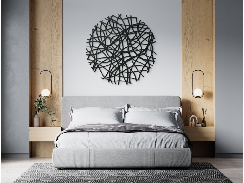Štýlová okrúhla nálepka na stenu dodá osobitú atmosféru každej miestnosti. Univerzálny motív drevenej dekorácie na stenu Prepletance umožňuje využiť obraz aj ako zaujímavý darček.