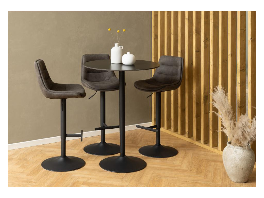 Stolička je dostupná v elegantnom prevedení hnedosivá / čierna, ktoré pôsobí reprezentatívne a zároveň nenápadne. Vďaka čalúneniu z príjemnej látky, jemne tvarovanému operadlu a výškovo nastaviteľnému sedadlu je ideálnou voľbou k barovému pultu či vyššiemu kuchynskému ostrovčeku.