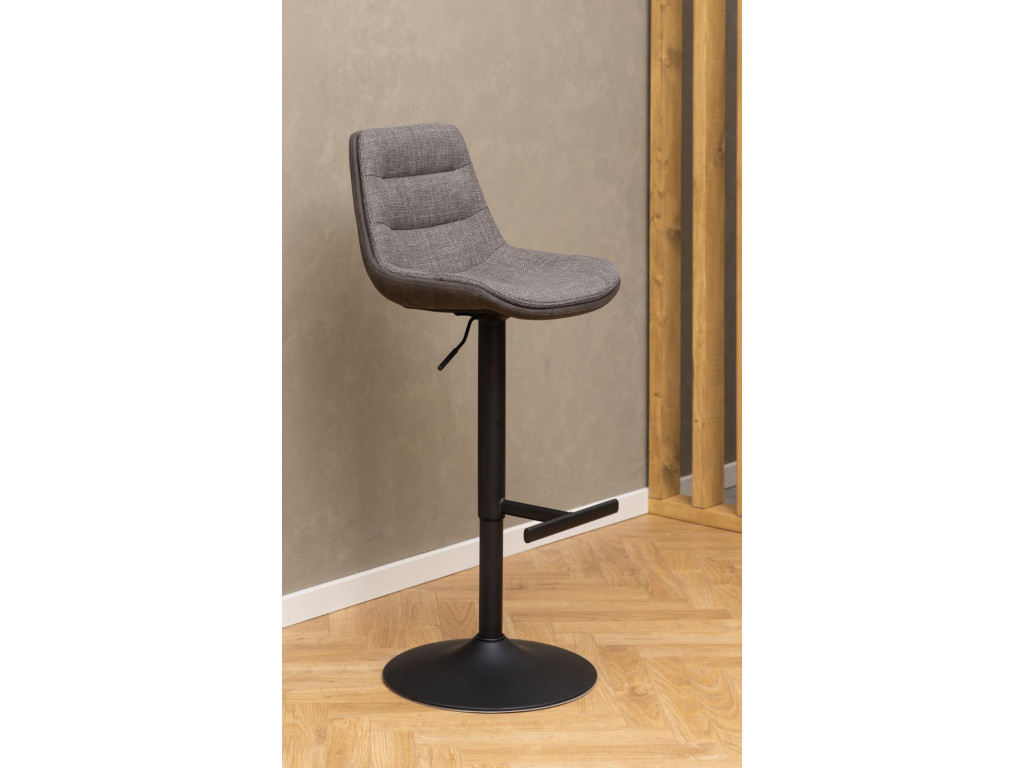 Stolička je dostupná v elegantnom prevedení sivá / čierna, ktoré pôsobí reprezentatívne a zároveň nenápadne. Vďaka čalúneniu z príjemnej látky, jemne tvarovanému operadlu a výškovo nastaviteľnému sedadlu je ideálnou voľbou k barovému pultu či vyššiemu kuchynskému ostrovčeku.