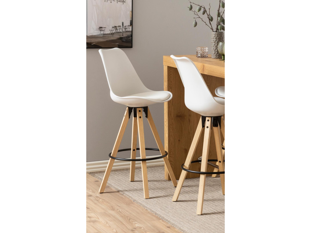 Barová stolička Dima - biela ekokoža / prírodná
