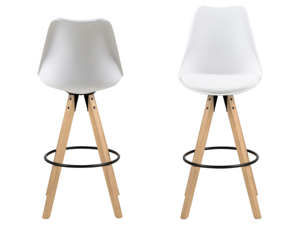 2x Barová stolička Dima - biela ekokoža / prírodná