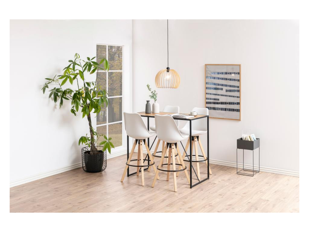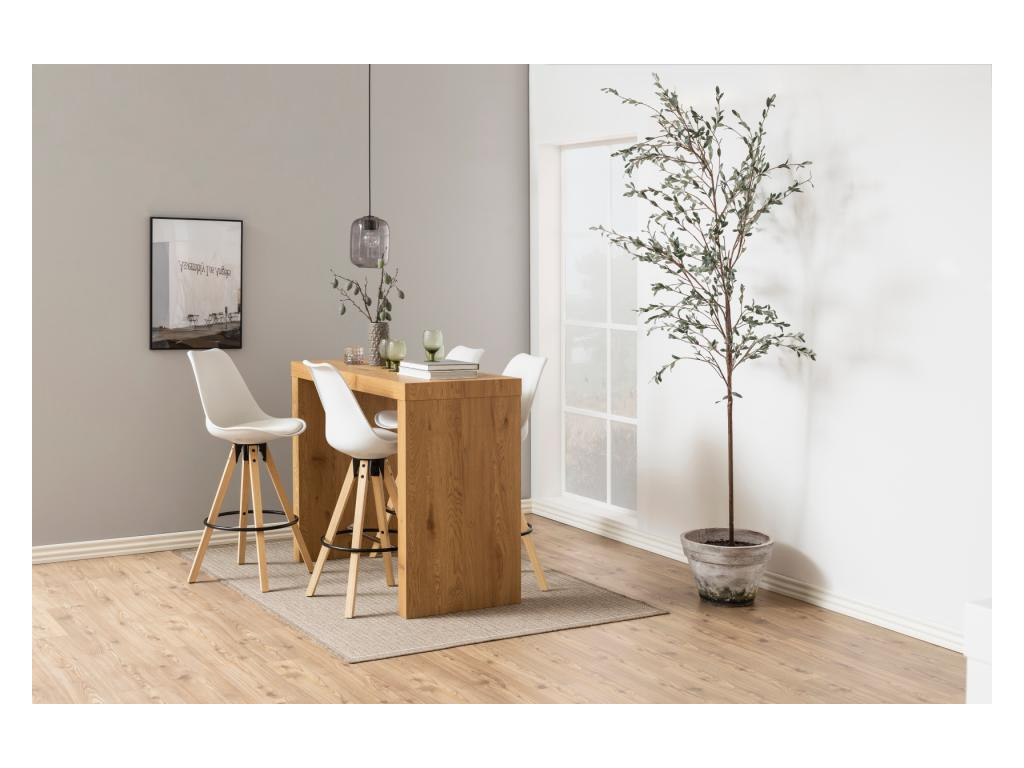 Vkusná a svetlá barová stolička v bielom PU prevedení pôsobí sviežo a čisto. V kombinácii s prírodným kaučukovým drevom vytvára harmonický celok. Mäkké čalúnenie zabezpečuje pohodlie, zatiaľ čo pevná konštrukcia stabilitu. Nadčasová voľba do modernej kuchyne.