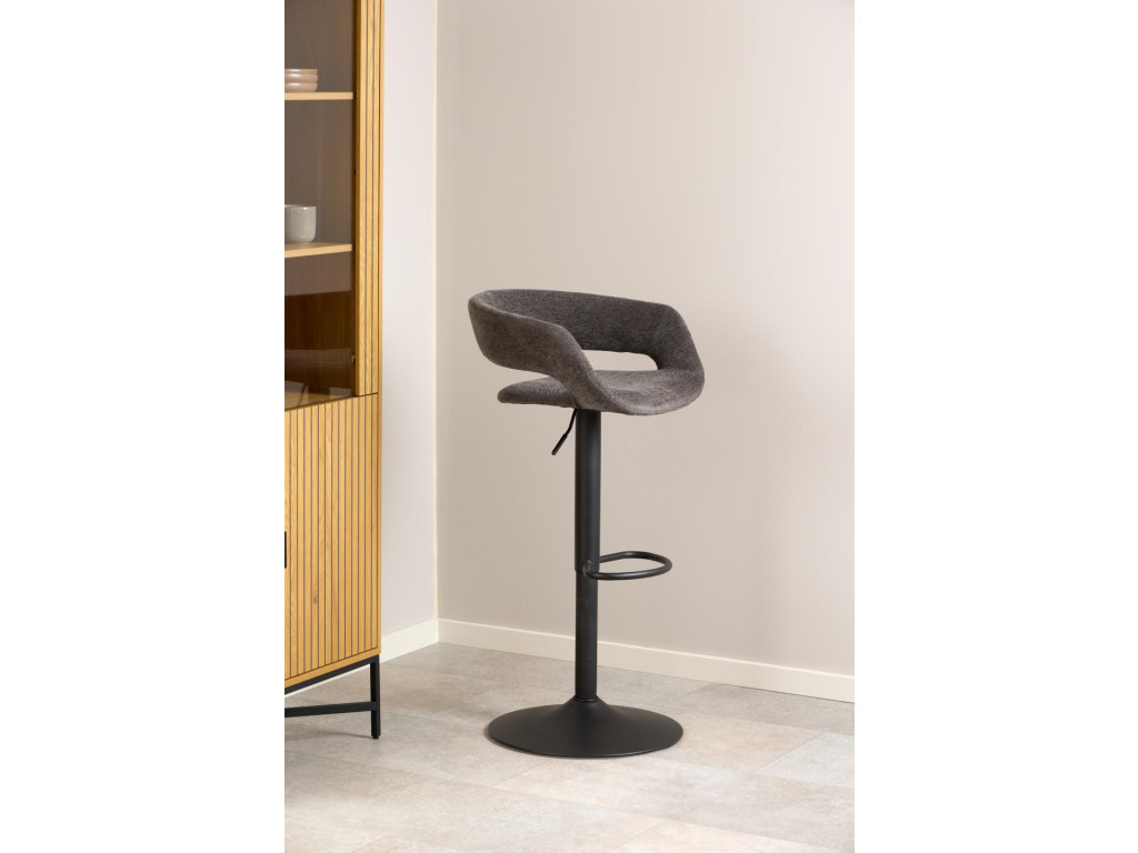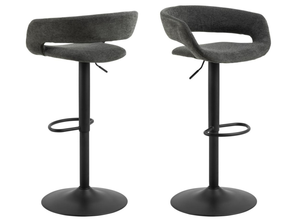 Stolička je dostupná v elegantnom prevedení čierna / antracit, ktoré pôsobí reprezentatívne a zároveň nenápadne. Vďaka čalúneniu z príjemnej látky, jemne tvarovanému operadlu a výškovo nastaviteľnému sedadlu je ideálnou voľbou k barovému pultu či vyššiemu kuchynskému ostrovčeku.