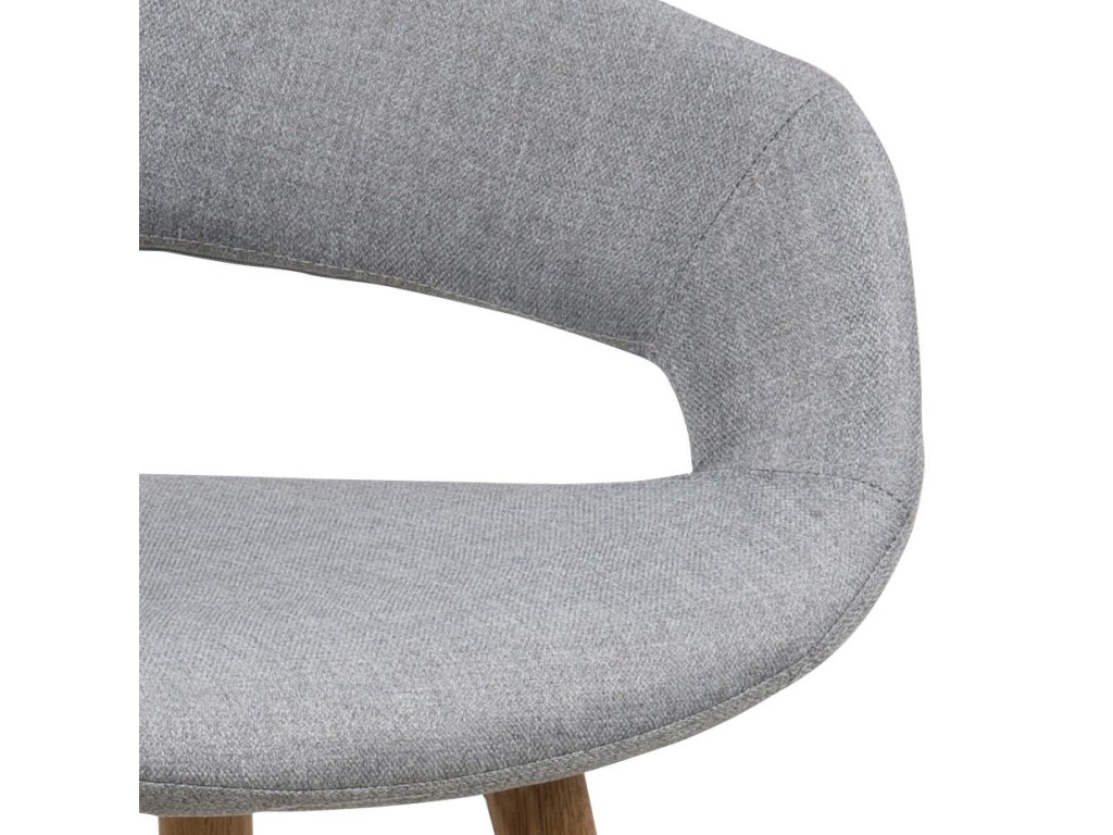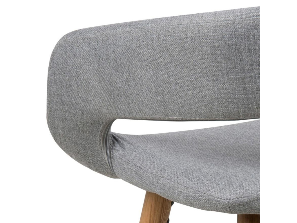 Stolička Grace v sivej látke Korzika s prírodnou dubovou základňou spája moderný komfort s klasickými materiálmi. Vďaka čalúnenému sedadlu a ergonomickému tvaru je pohodlná aj pri dlhšom sedení. Skvelo doplní kuchynské pulty vo svetlých i naturálnych interiéroch.