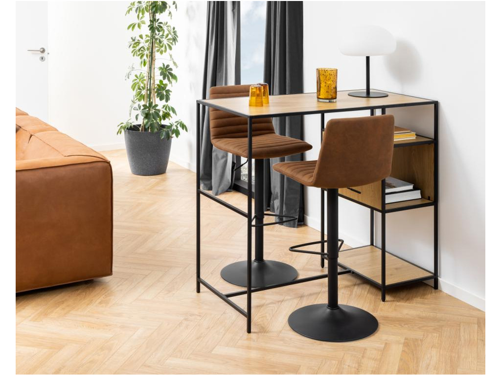 Stolička je dostupná v elegantnom prevedení čierna / hnedá, ktoré pôsobí reprezentatívne a zároveň nenápadne. Vďaka čalúneniu z príjemnej látky, jemne tvarovanému operadlu a výškovo nastaviteľnému sedadlu je ideálnou voľbou k barovému pultu či vyššiemu kuchynskému ostrovčeku.