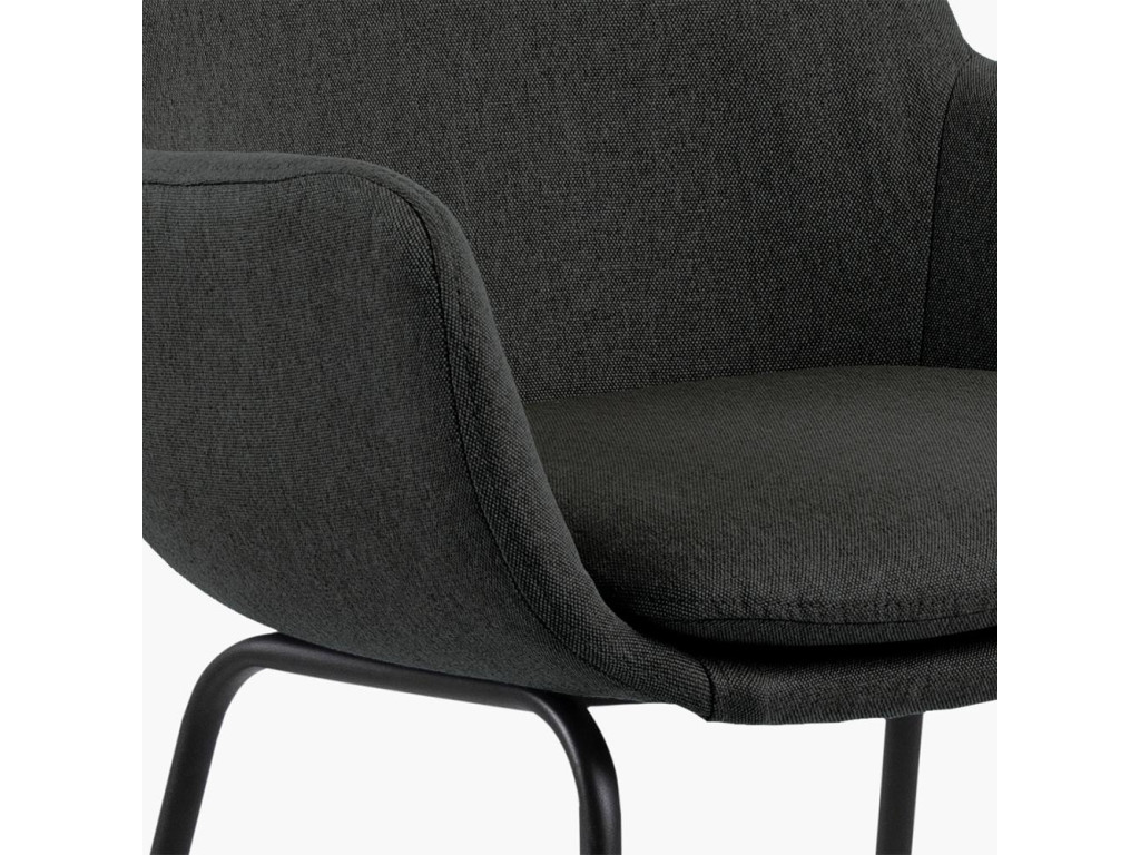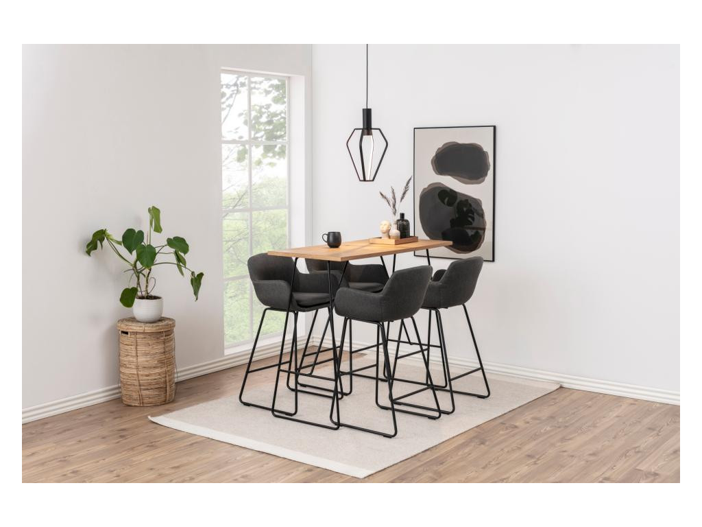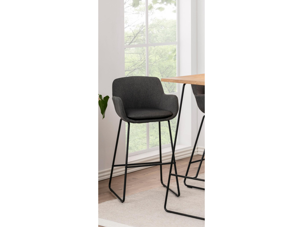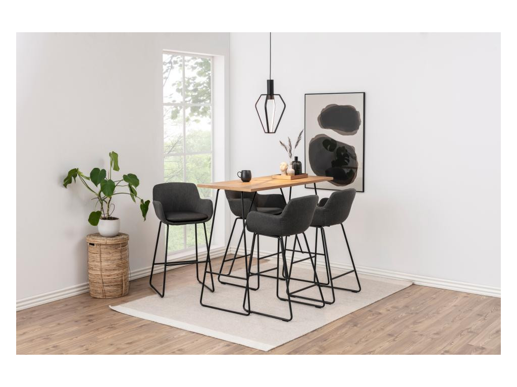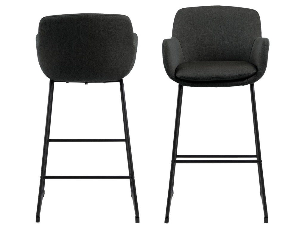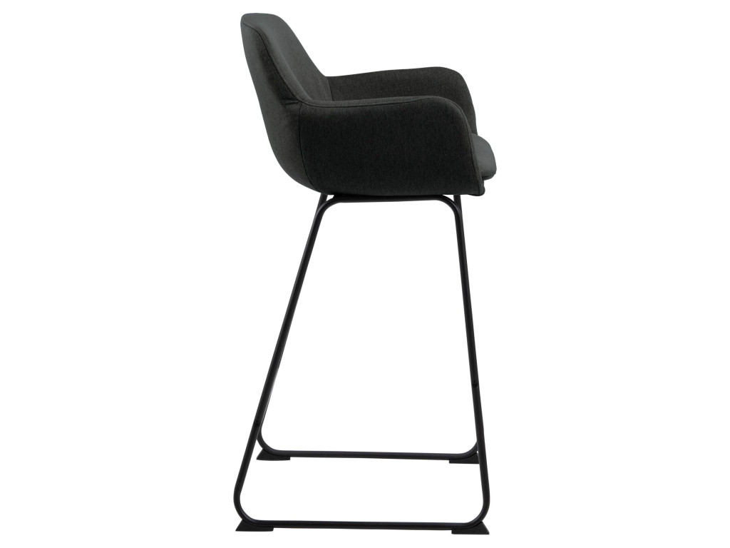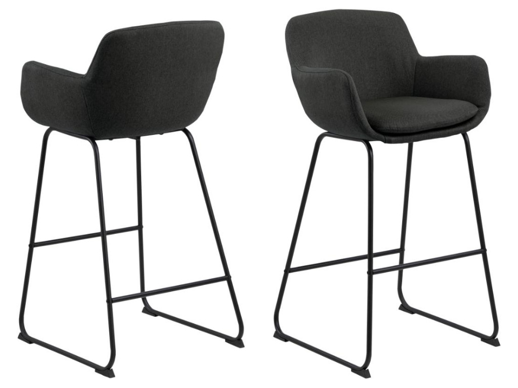 Barová stolička Lisa ponúka kombináciu komfortu a moderného dizajnu. Tmavosivý látkový poťah je doplnený o čierny kovový rám so sánkovým podstavcom. Voľný vankúš na sedenie pridáva pohodlie aj vizuálny akcent. Stolička je ideálna do kuchynských pultov či barových kútov.