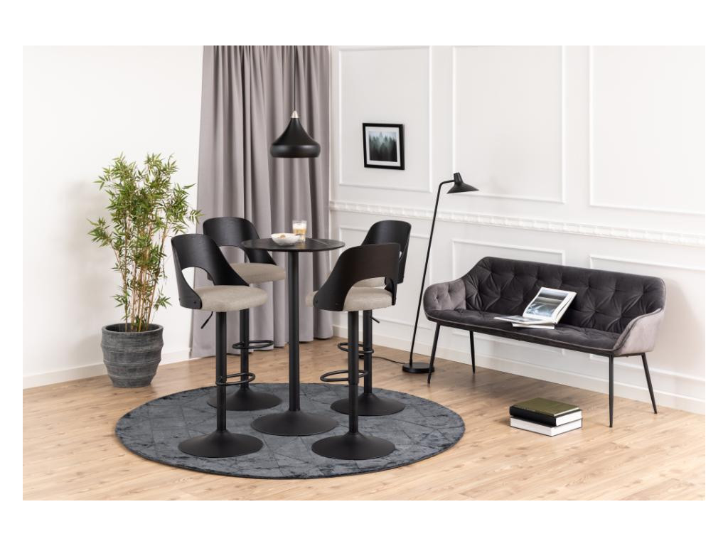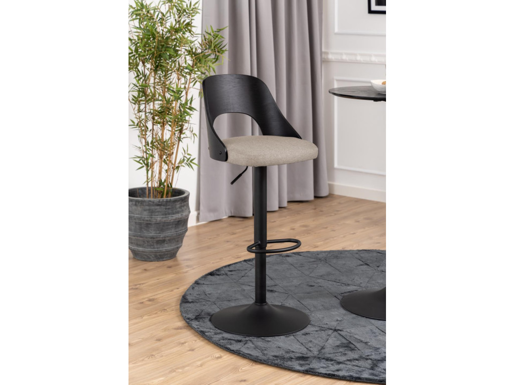 Stolička je dostupná v elegantnom prevedení sivá / čierna, ktoré pôsobí reprezentatívne a zároveň nenápadne. Vďaka čalúneniu z príjemnej látky, jemne tvarovanému operadlu a výškovo nastaviteľnému sedadlu je ideálnou voľbou k barovému pultu či vyššiemu kuchynskému ostrovčeku.