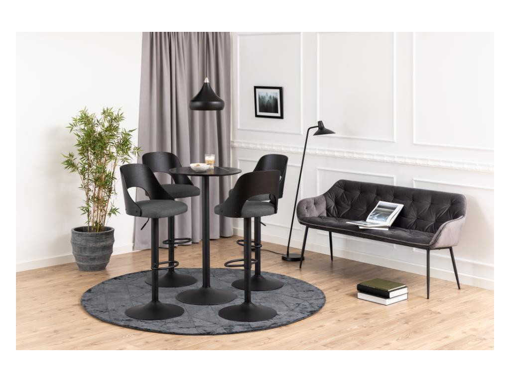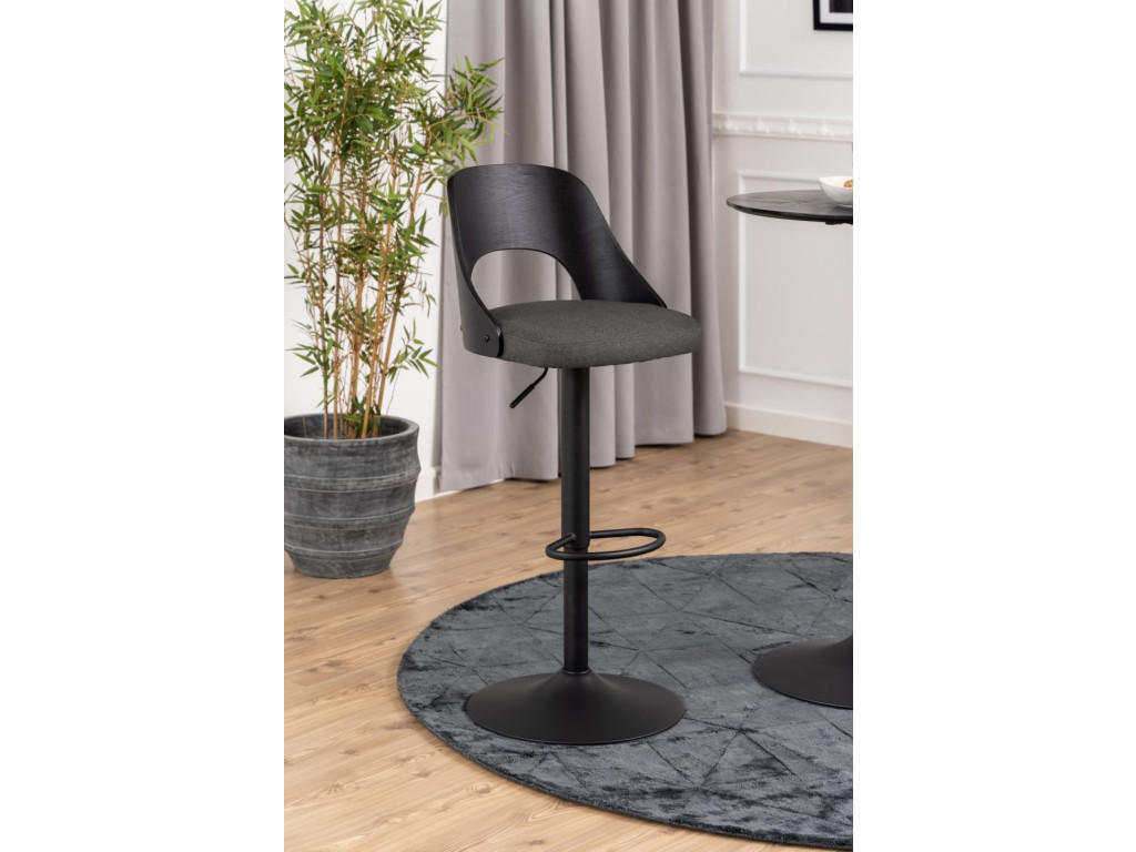 Stolička Lucys ponúka komfort a moderný vzhľad. Tmavosivé čalúnenie pôsobí elegantne a príjemne. Nastaviteľná výška a otočná funkcia zaručujú pohodlie. Vhodná k barovým pultom a kuchynským ostrovom.