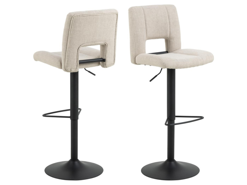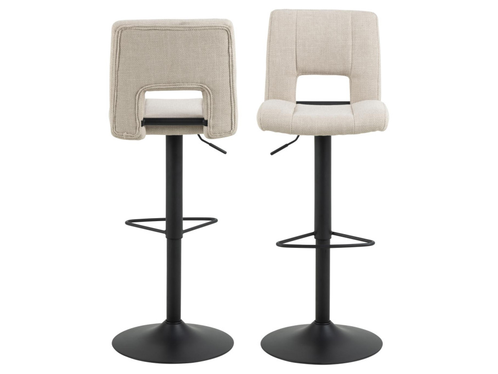 Stolička Sylvia kombinuje béžové čalúnenie a čiernu oceľovú podnož s plynovým zdvihom. Otočná funkcia a prešívanie pridávajú moderný vzhľad. Vhodná do kuchynských barov či ostrovčekov. Dodávané v sade po 2 kusoch.