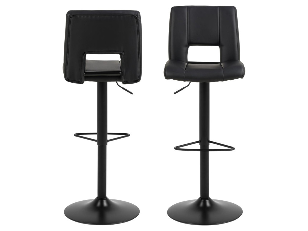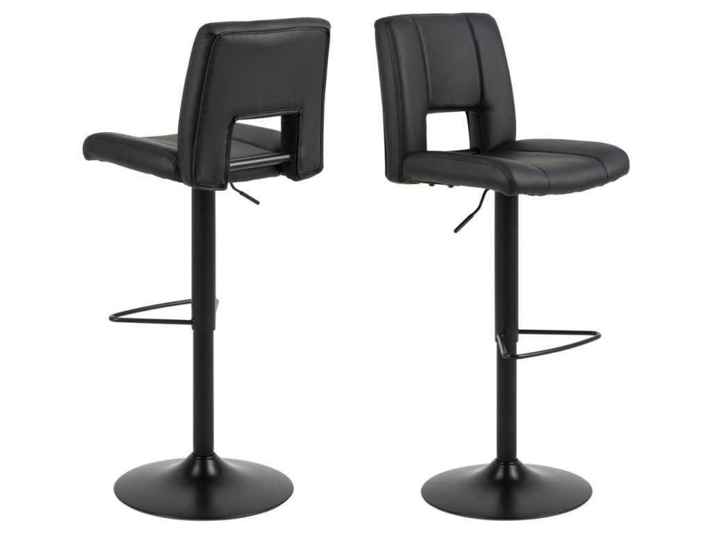 Stolička je dostupná v elegantnom prevedení čierna, ktoré pôsobí reprezentatívne a zároveň nenápadne. Vďaka čalúneniu z ekokože, jemne tvarovanému operadlu a výškovo nastaviteľnému sedadlu je ideálnou voľbou k barovému pultu či vyššiemu kuchynskému ostrovčeku.