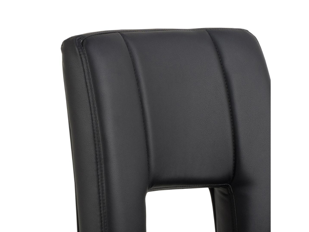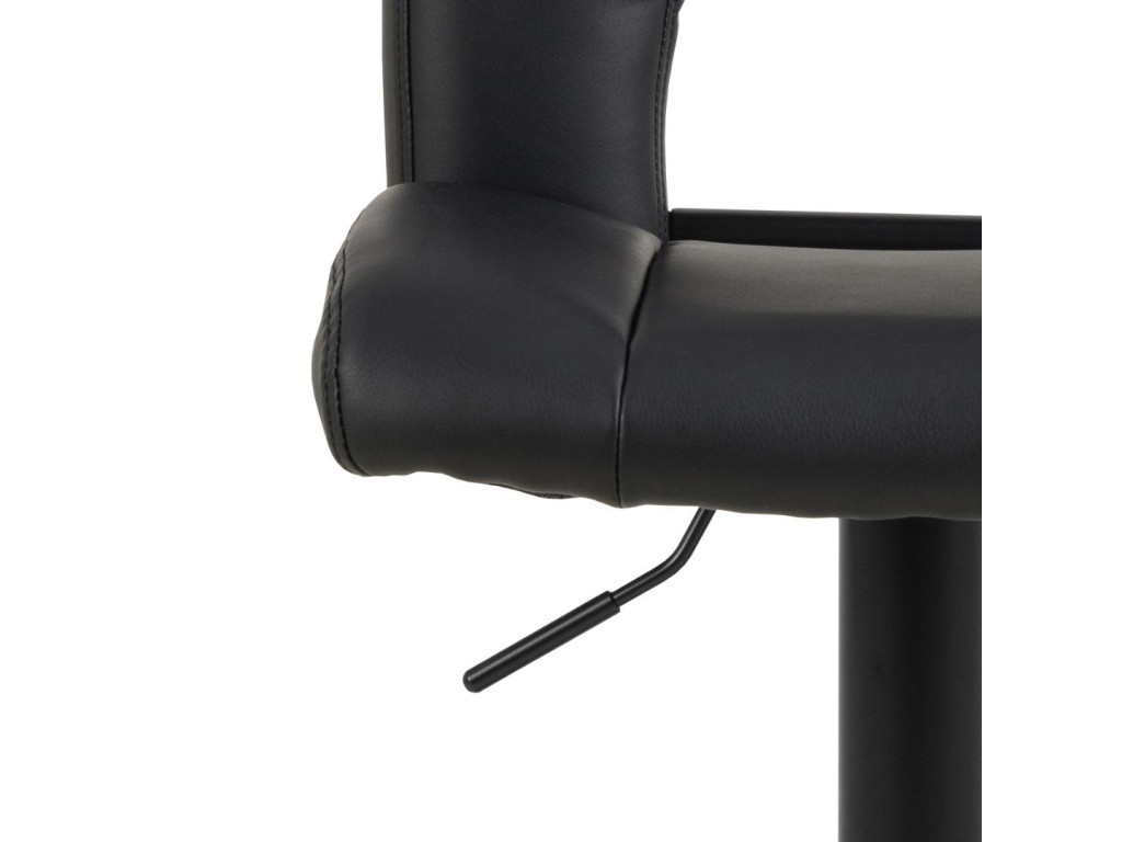 Sylvia stolička v čiernej ekokoži ponúka moderný vzhľad s dôrazom na detail. Zvislé prešívanie a otočný mechanizmus spojený s výškovo nastaviteľnou funkciou pomocou plynového zdvihu z nej robí praktický doplnok k barovému pultu či kuchynskému ostrovčeku.