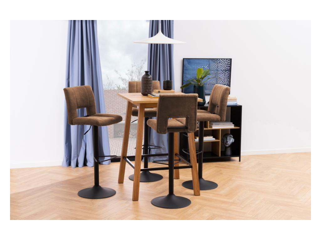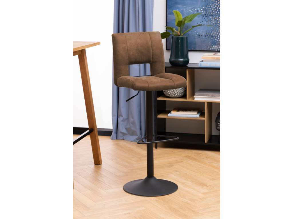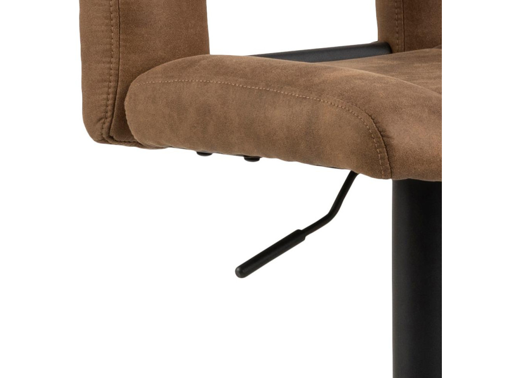 Stolička je dostupná v elegantnom prevedení čierna / hnedá, ktoré pôsobí reprezentatívne a zároveň nenápadne. Vďaka čalúneniu z príjemnej látky, jemne tvarovanému operadlu a výškovo nastaviteľnému sedadlu je ideálnou voľbou k barovému pultu či vyššiemu kuchynskému ostrovčeku.