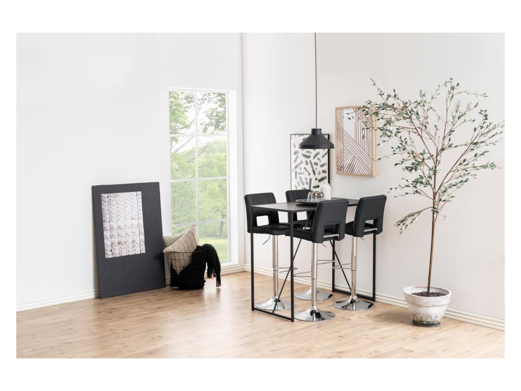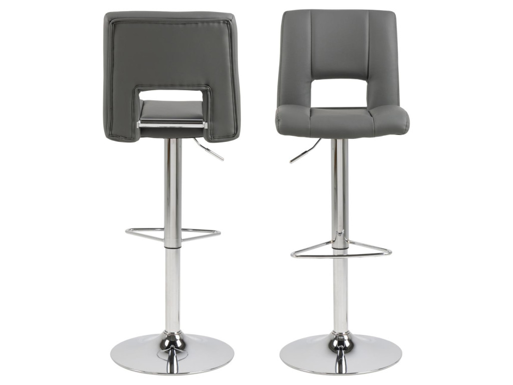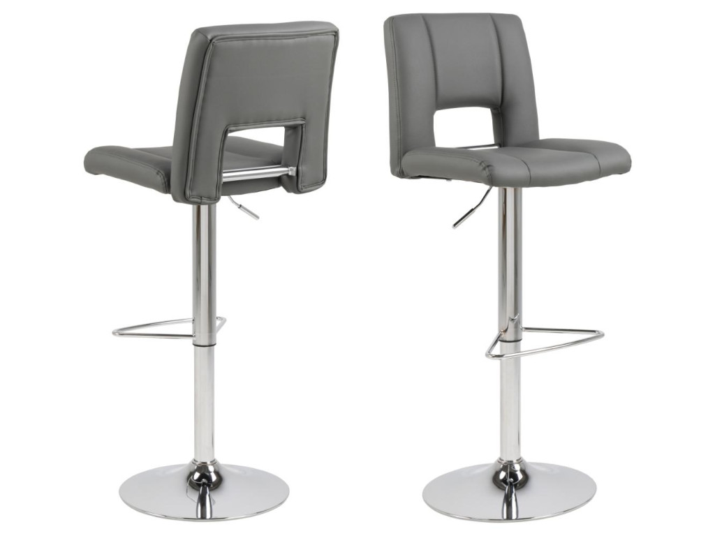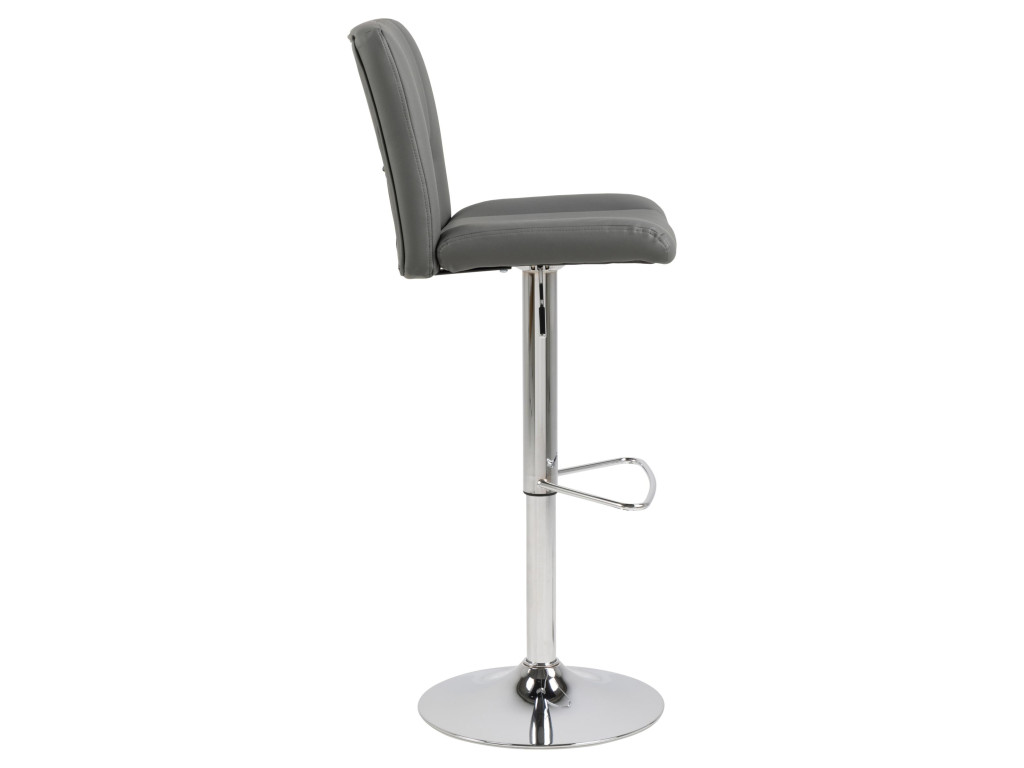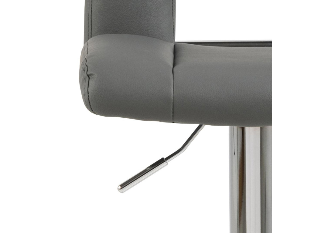 Stolička je dostupná v elegantnom prevedení sivá, ktoré pôsobí reprezentatívne a zároveň nenápadne. Vďaka čalúneniu z ekokože, jemne tvarovanému operadlu a výškovo nastaviteľnému sedadlu je ideálnou voľbou k barovému pultu či vyššiemu kuchynskému ostrovčeku.