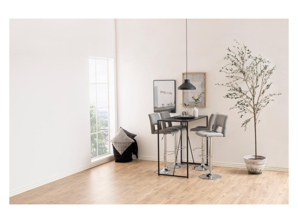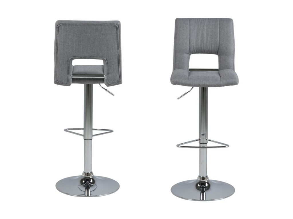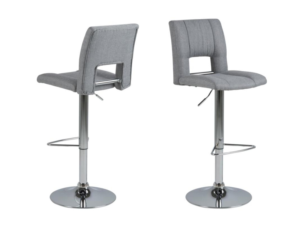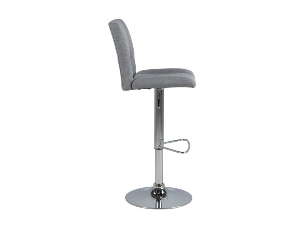 Stolička je dostupná v elegantnom prevedení sivá, ktoré pôsobí reprezentatívne a zároveň nenápadne. Vďaka čalúneniu z príjemnej látky, jemne tvarovanému operadlu a výškovo nastaviteľnému sedadlu je ideálnou voľbou k barovému pultu či vyššiemu kuchynskému ostrovčeku.