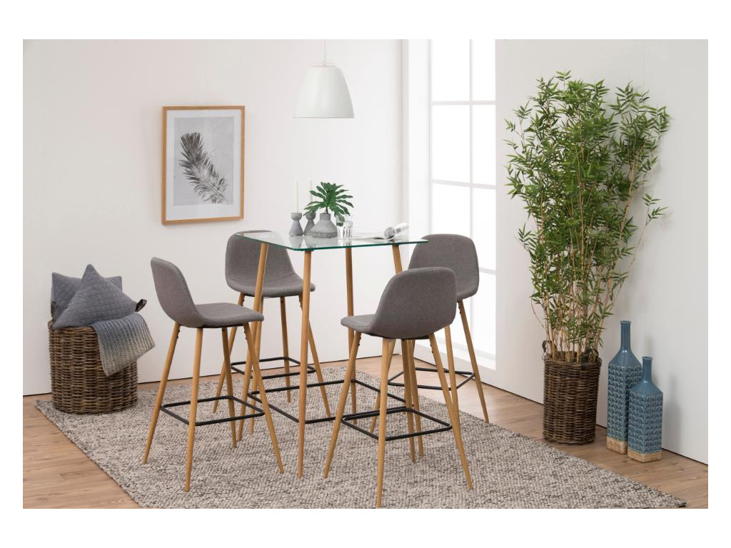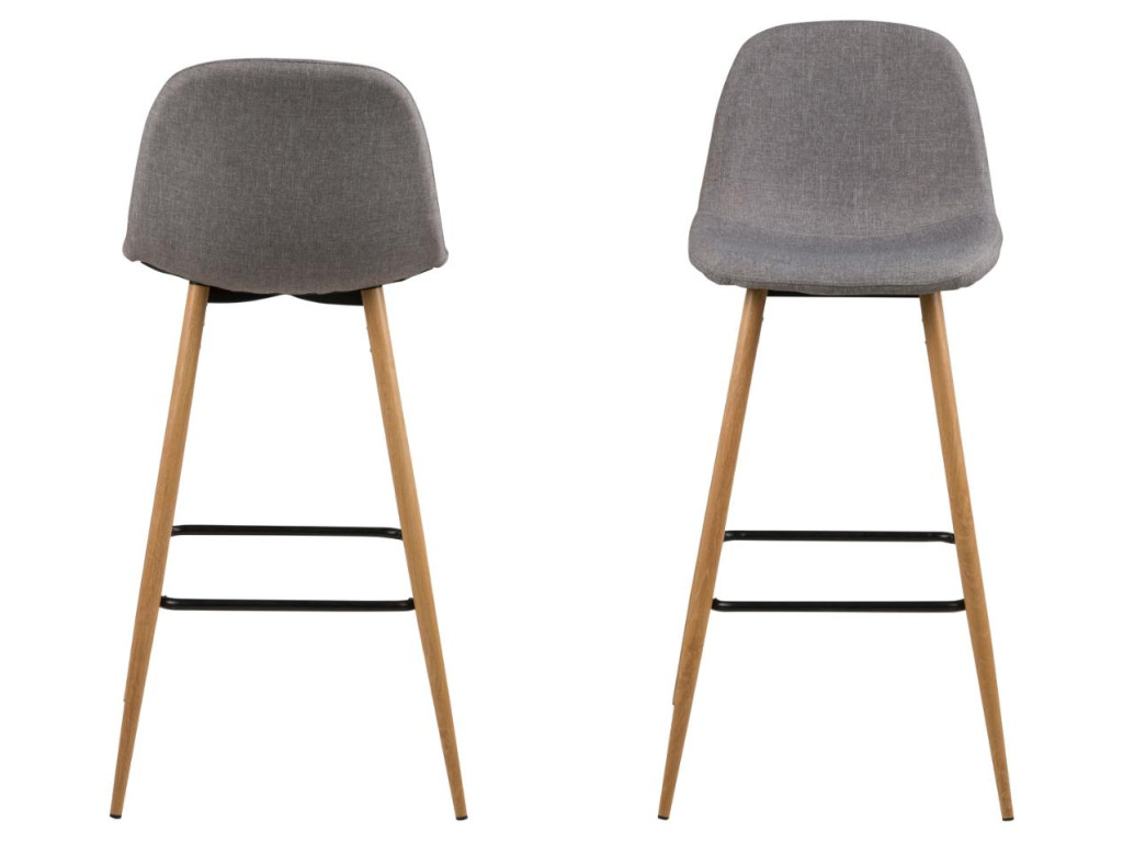 Barová stolička Wilma kombinuje svetlosivú látku so základňou z dubového dekoru. Pohodlné sedadlo a opierka vytvárajú príjemné miesto na sedenie, zatiaľ čo pevná oceľová konštrukcia zaručuje stabilitu. Elegantný doplnok do každého barového kútika.