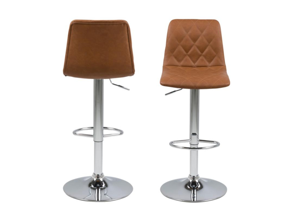 Barová stolička Emu zaujme harlekýnovým prešívaním a elegantným svetlohnedým PU poťahom. Vďaka otočnej chrómovej základni s plynovým zdvihom je nielen štýlová, ale aj praktická. Skvelý doplnok pre domácnosti aj komerčné bary.