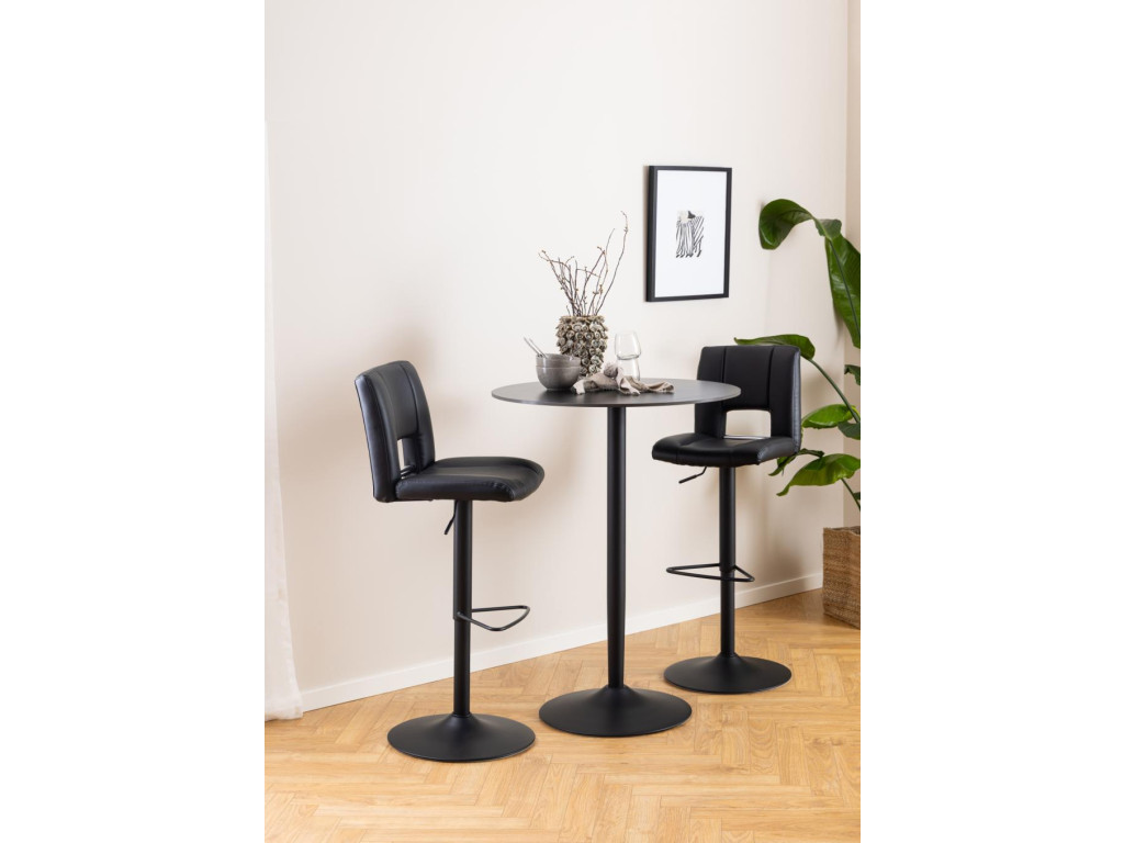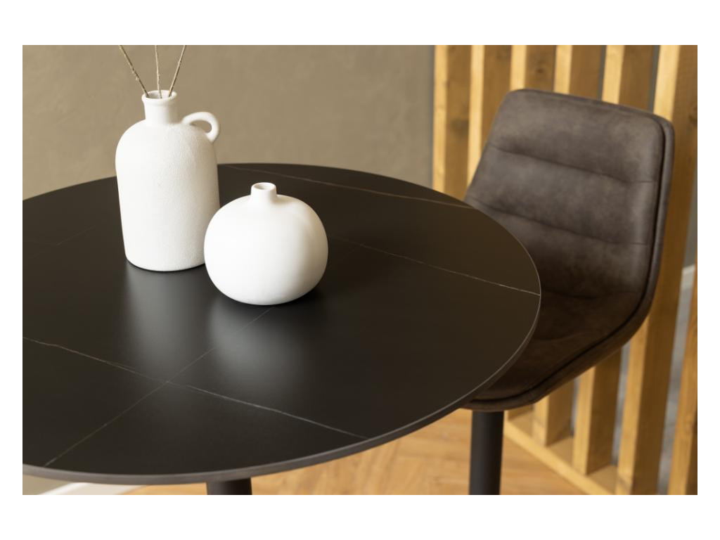Barový stôl Malten ponúka elegantný priestor pre raňajky či rýchle posedenie. Čierna keramická doska v kombinácii s čiernou oceľovou nohou je trvácna a štýlová. Rozmery: Ø80 × 105 cm.