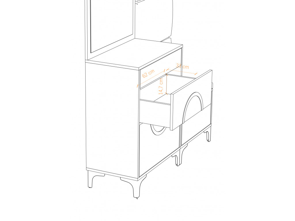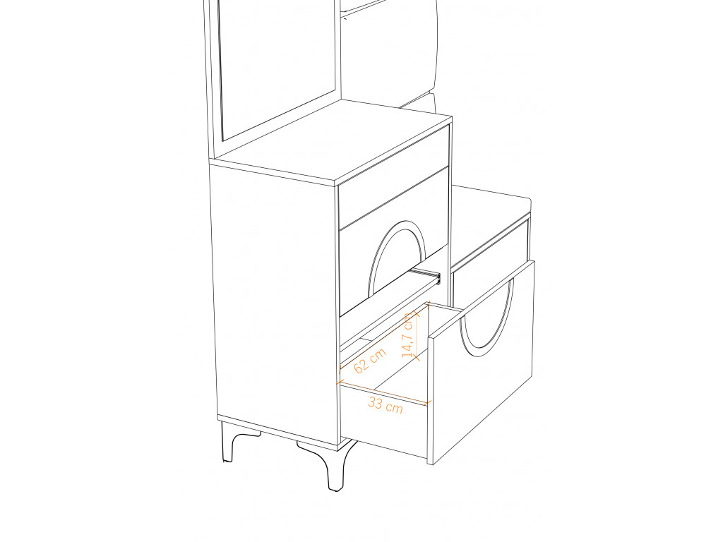 - Spodná zásuvka: 62 x 33 x 14,7 cm (šírka x hĺbka x výška)