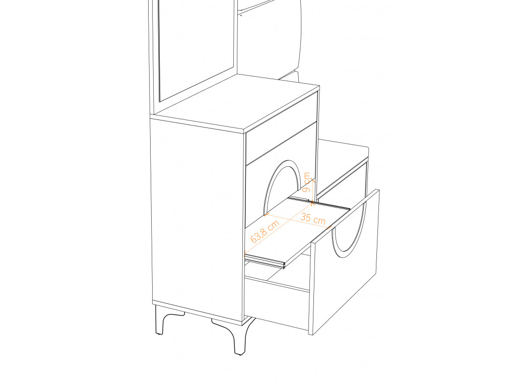 - Výsuvná polica: 63,8 x 35 x 9 cm (šírka x hĺbka x výška)