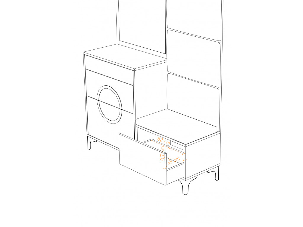 - Výsuvná polica: biela, matná laminovaná doska (hrúbka 18 mm); ABS hrana.