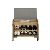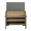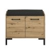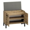 Botník na topánky Nelin 04 ponúka dve dvierka na obuv, pohodlný čalúnený podsedák z čiernej ekokože a skrytý úložný priestor pod ním. Kombinuje praktickosť s elegantným dizajnom, ktorý oživí každú predsieň.