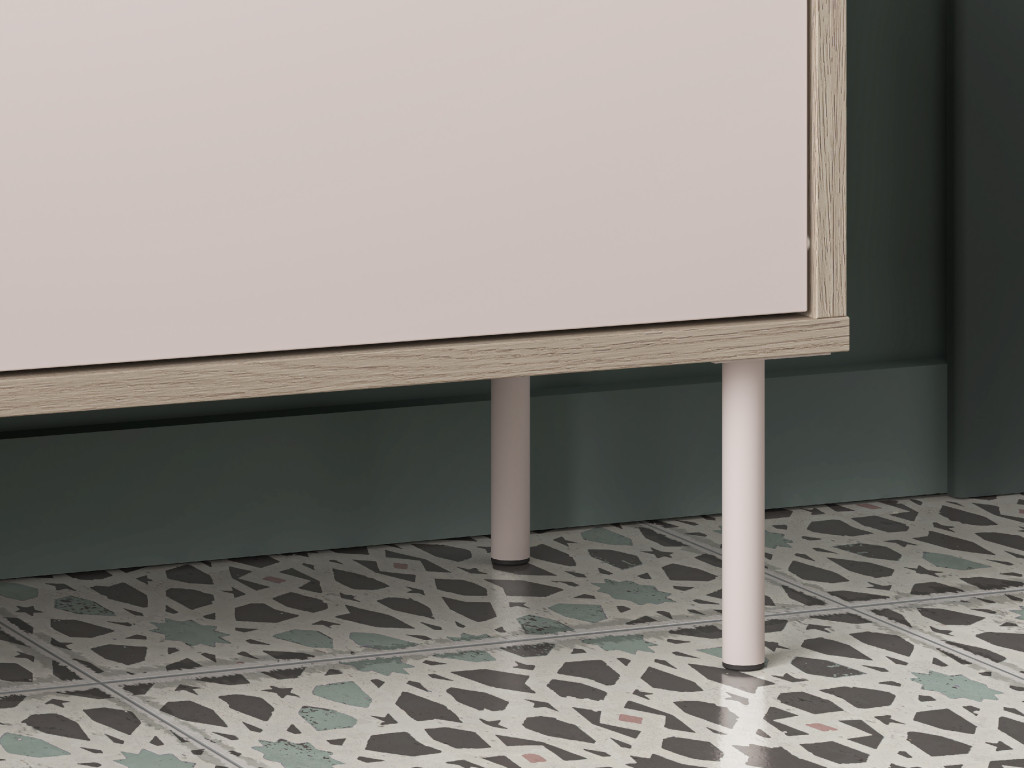 Kolekcia Voco spája modernú eleganciu s praktickým riešením pre každodenné používanie. Jemné béžové (kašmírové) fronty sa krásne dopĺňajú s teplým dekorom dub krémový, zatiaľ čo vysoké kovové nohy v odtieni kašmíru dodávajú nábytku ľahkosť a vzdušnosť. Minimalistický vzhľad podčiarkujú predné čelá bez úchytiek. Kolekcia Voco je vyrobená z 16 mm laminovanej dosky s odolnými ABS hranami, doplnená o biele HDF zadné panely.