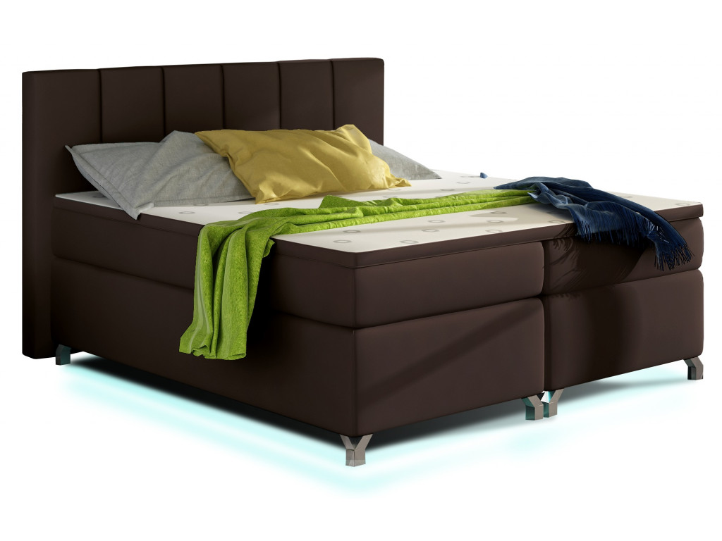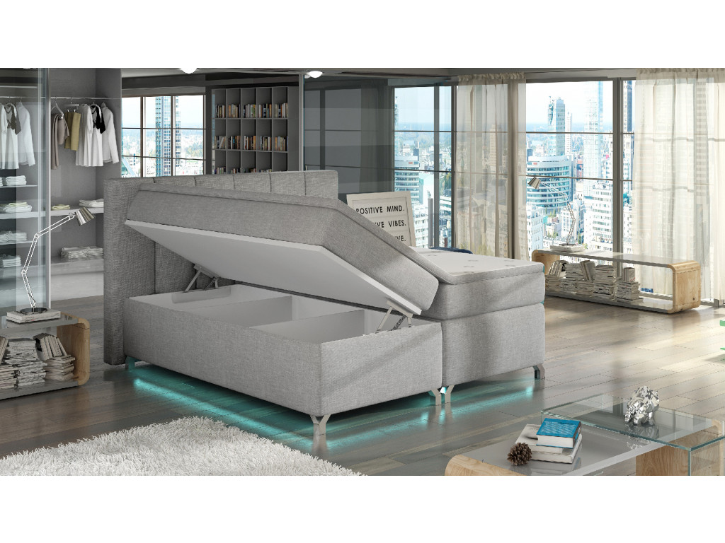 Táto mimoriadne pohodlná posteľ je vybavená LED svetlami pre úžasný efekt v spálni. Vkusný štýl a tento moderný nádych, posteľ robí presne to, čo očakávate: poskytuje miesto pre zdravý spánok, kľúčový faktor pri udržiavaní nášho pocitu pohody. Čalúnená posteľ boxspring sa veľmi dobre hodí do moderných aj klasických interiérov.