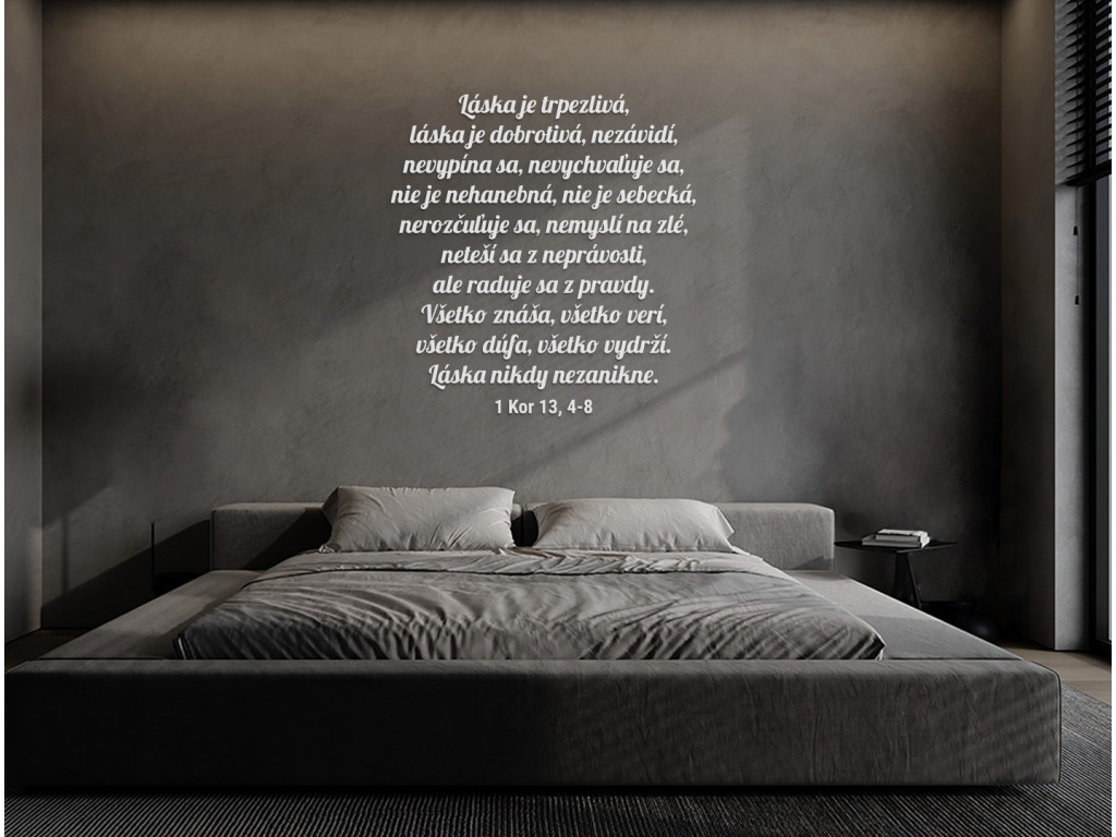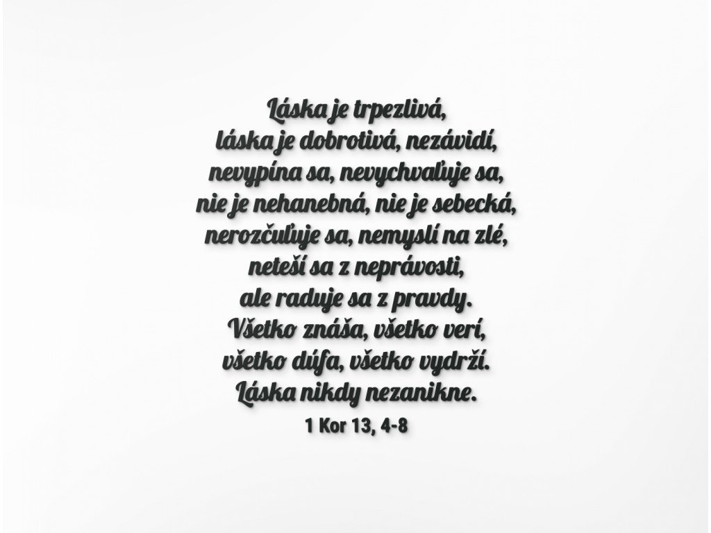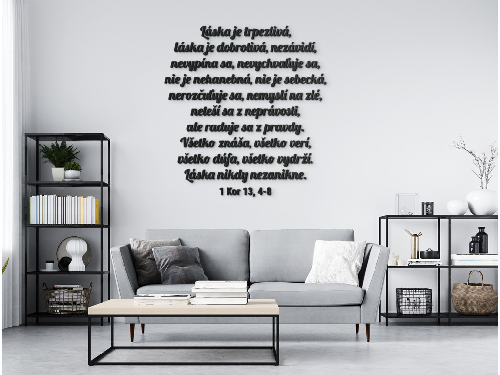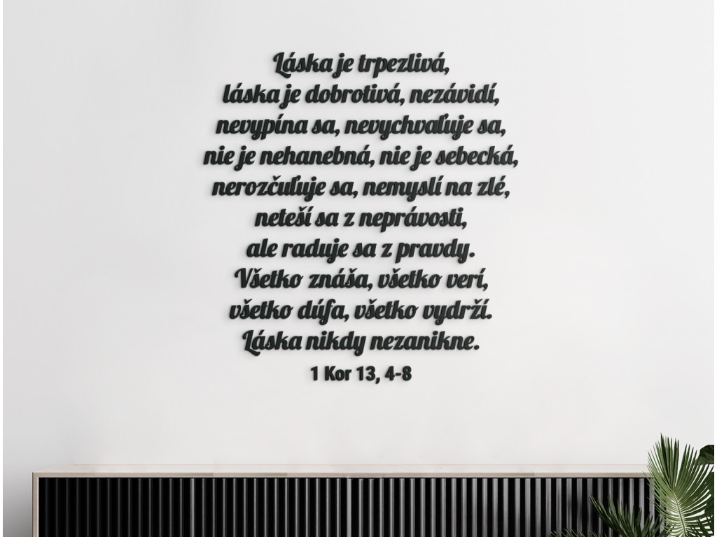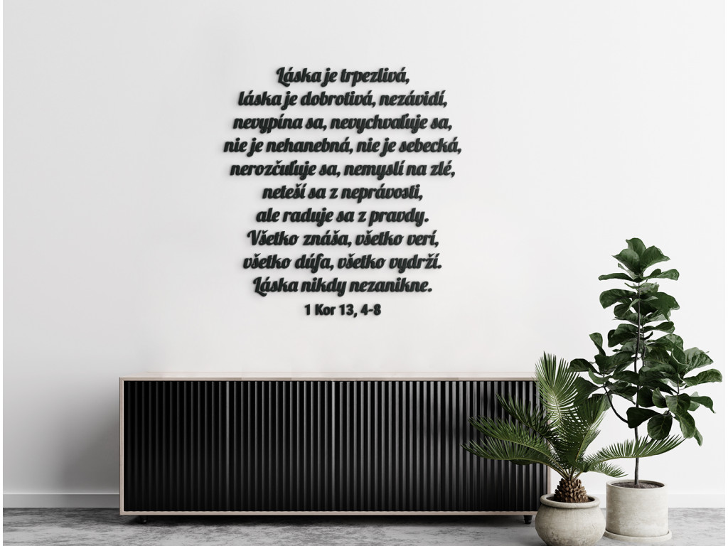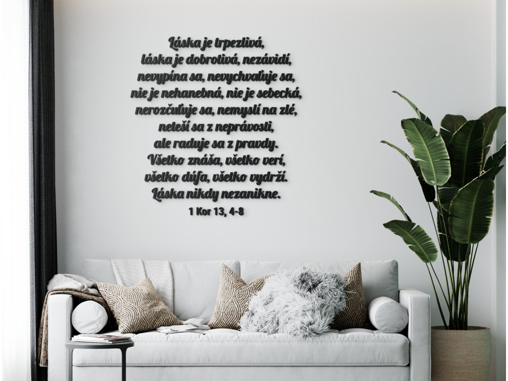 Mnohí z vás ho poznajú s čítania počas svadobného obradu. Krásny Hymnus na lásku v modernom prevedení bude v interiéri stále pripomínať čo znamená láska a aká by mala byť.