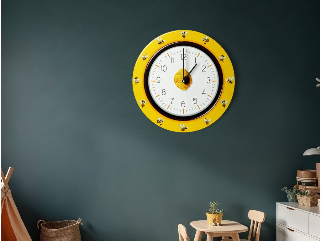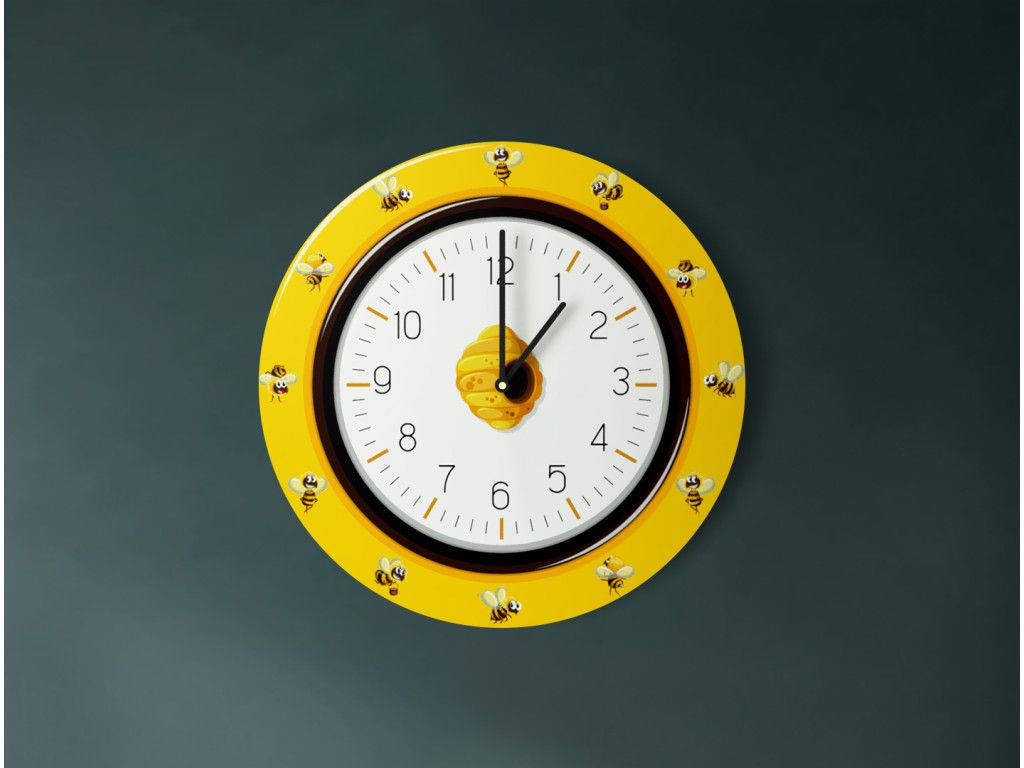 Milé detské nástenné hodiny s motívom pracovitých včielok, ktoré oživia každú detskú izbu. Do hodín montujeme motorček s tichým chodom, ktorý zabezpečí pokojný spánok bez rušivého tikania.