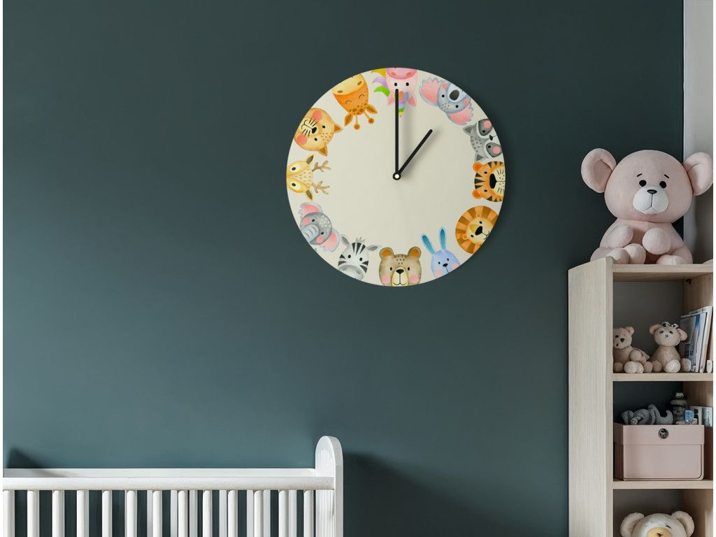 Hravé hodiny na stenu plné farebných a roztomilých zvieratiek, navrhnuté pre deti s dôrazom na jednoduchý a veselý dizajn. Tichý mechanizmus je ideálny do izby aj na spánok.