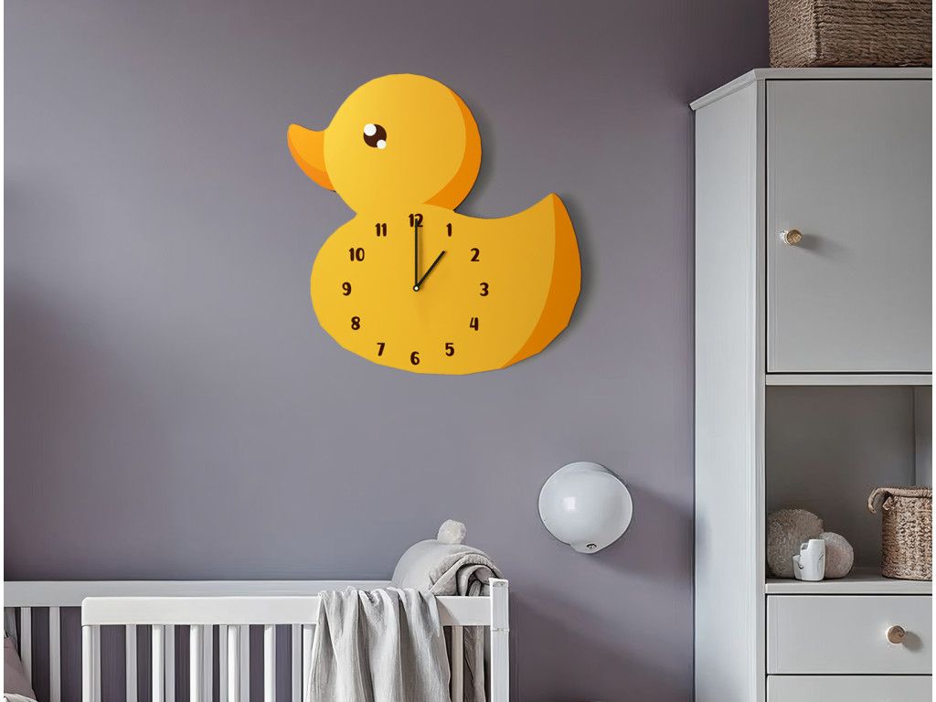 Milé detské nástenné hodiny Kačička prinesú do detskej izby hravú a veselú atmosféru. Jemný motív kačičky oživí priestor a poteší každé dieťa. Tichý chod zabezpečí pokojné prostredie bez rušivého tikotu, ideálne na oddych aj spánok.