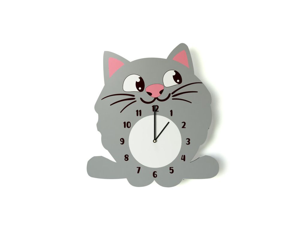 Milé detské nástenné hodiny Mačiatko prinesú do detskej izby jemnú a útulnú atmosféru. Roztomilý motív mačiatka oživí priestor a poteší každé dieťa. Tichý chod zabezpečí pokojné prostredie bez rušivého tikotu, ideálne na oddych aj spánok.