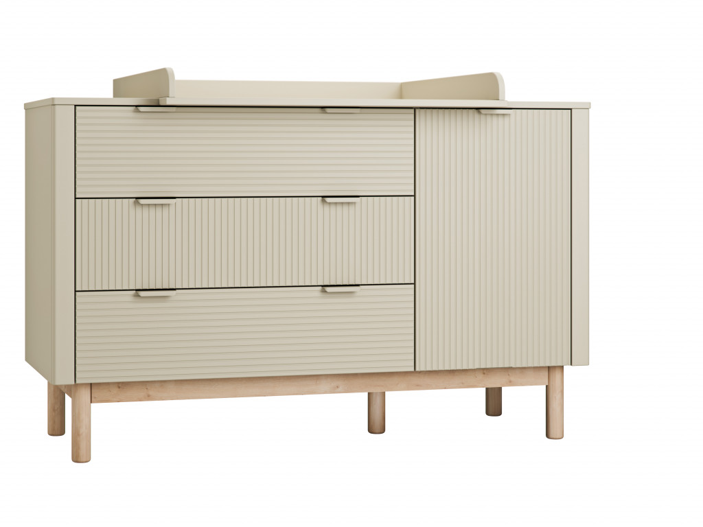 Béžová detská komoda na nožičkách z kolekcie Miloo dodá detskej izbe ten správny štýl. Komody sú nepostrádateľnou súčasťou detskej izby, pričom komoda Miloo s 3 zásuvkami a 1 dvierkami nezaberie veľa miesta a disponuje veľkým úložným priestorom.