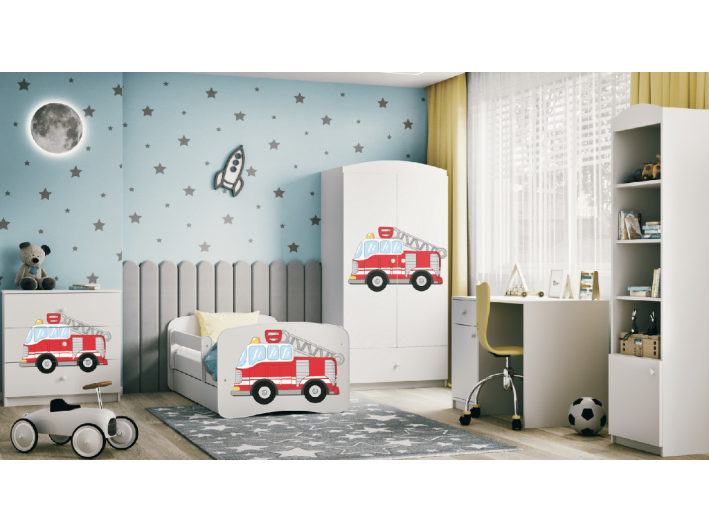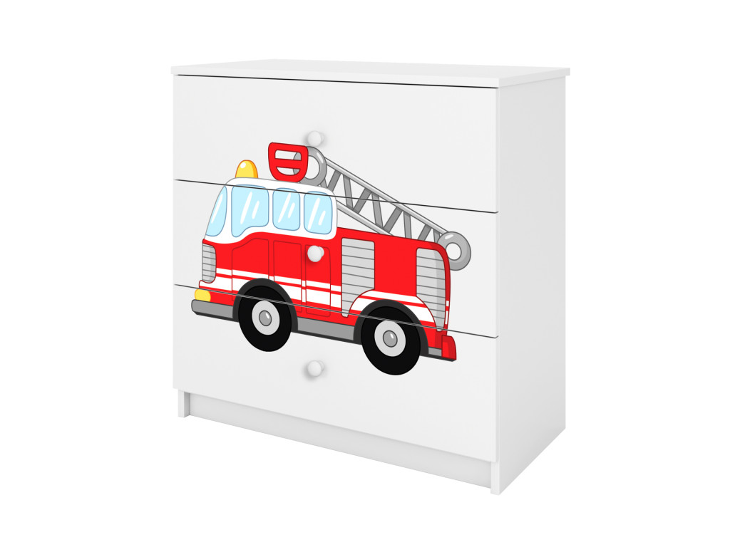Detská komoda Hasičské auto (biela)