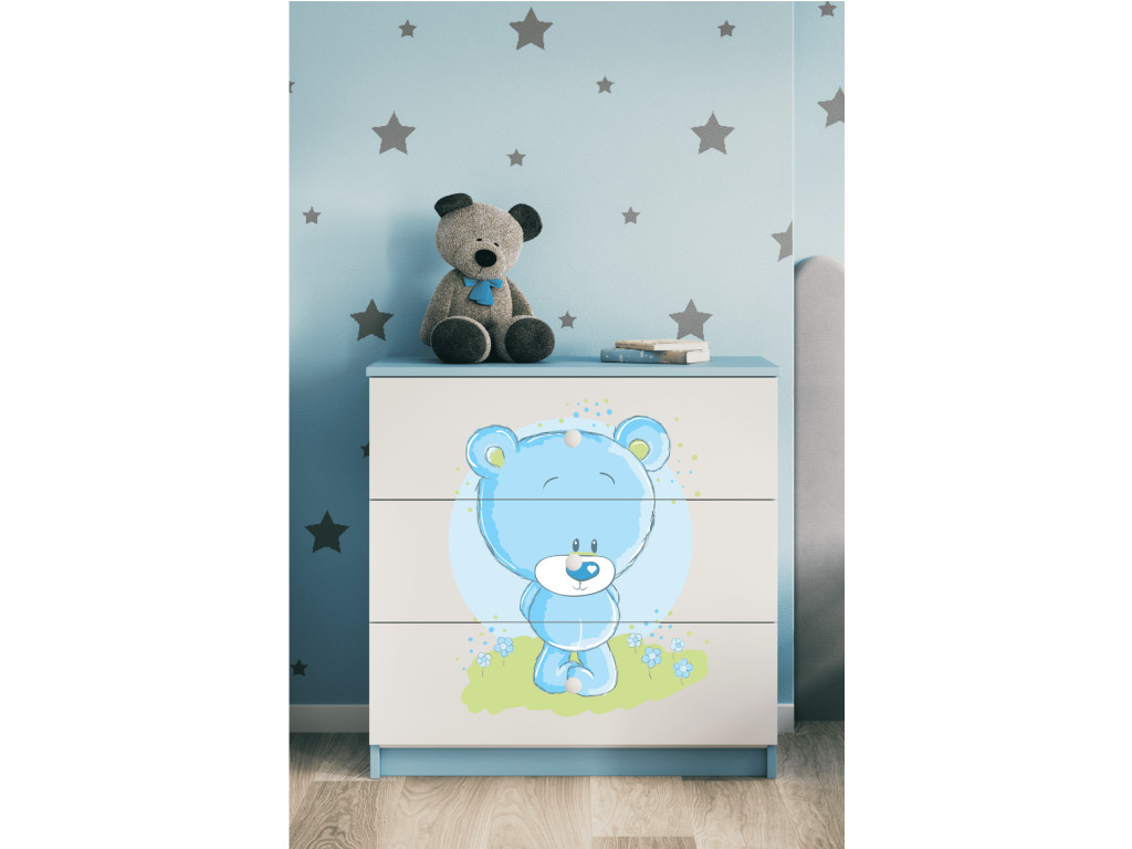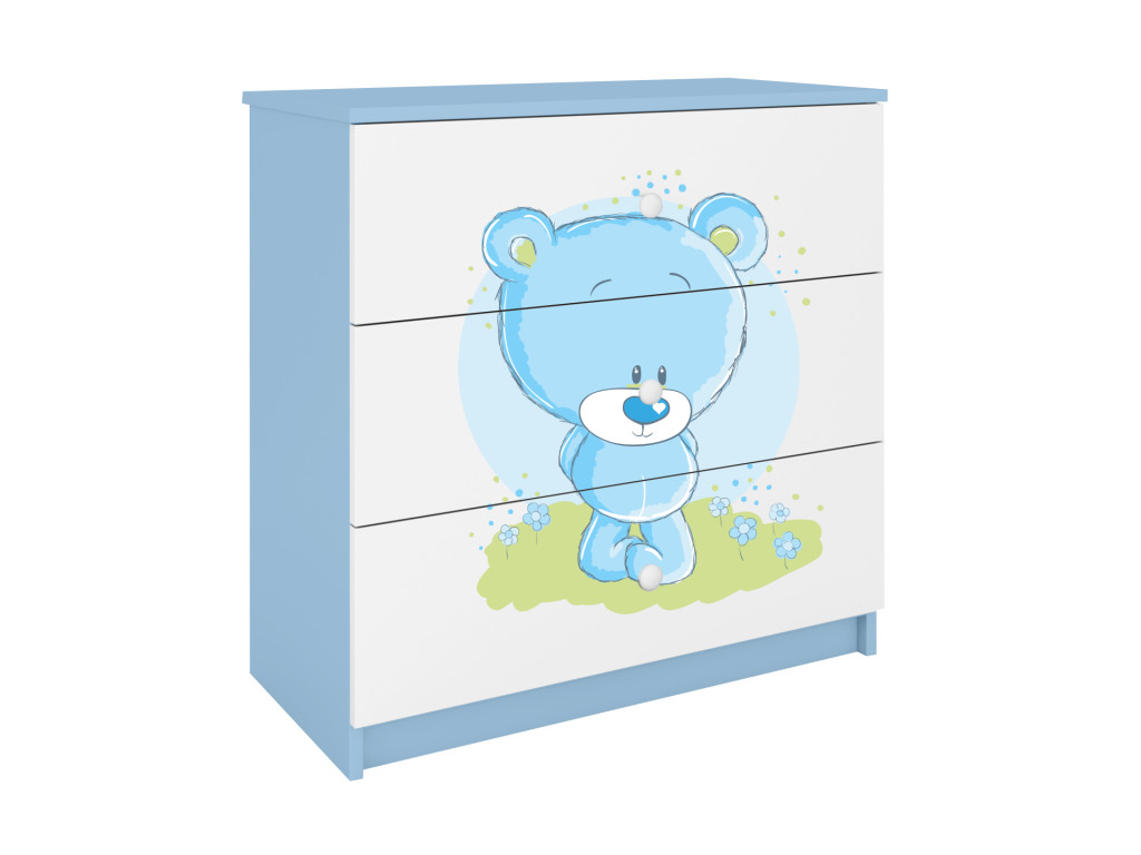 Vytvorte útulnú a praktickú detskú izbu s detskou komodou Macko (modrá)! Bielo-modrá kombinácia s veselým motívom macka rozjasní každý priestor, zatiaľ čo tri priestranné zásuvky poskytnú dostatok miesta na oblečenie, hračky alebo doplnky. Táto komoda je ideálnym spojením praktickosti a hravého dizajnu, ktorý poteší malých objaviteľov.