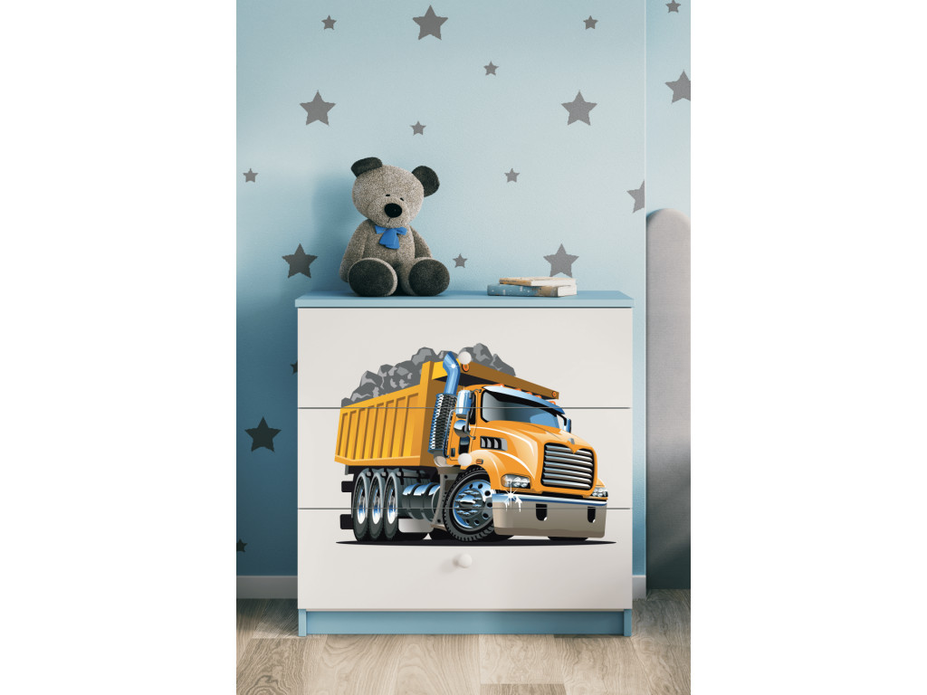 Detská komoda v jednoduchom štýle disponuje dostatočným úložným priestorom. Bielo - modrá komoda s Nákladiakom sa ľahko kombinuje aj s inými kúskami nábytku z kolekcie Babydreams.