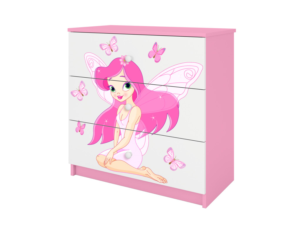 Dodajte izbe vašej malej princeznej čarovnú atmosféru s detskou komodou Víla a motýle (ružová)! Bielo-ružová kombinácia s jemným motívom víly a motýľov poteší každé dievčatko a vytvorí rozprávkový priestor. Tri priestranné zásuvky zabezpečia prehľadné uloženie všetkého potrebného a udržia izbu upratanú.