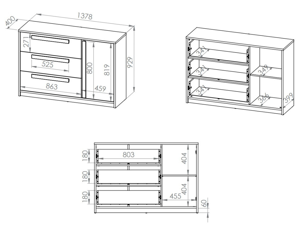 Praktická a všestranná komoda Drop 0801 vám pomôže udržať detskú izbu upratanú a organizovanú. Táto komoda je navrhnutá s jednými dvierkami, za ktorými sa ukrýva priestranný úložný priestor na väčšie predmety, a troma širokými zásuvkami, ideálnymi na uloženie oblečenia či hračiek. Svojím jednoduchým, ale funkčným dizajnom prináša do izby poriadok a zároveň poskytuje ľahko dostupný úložný priestor.